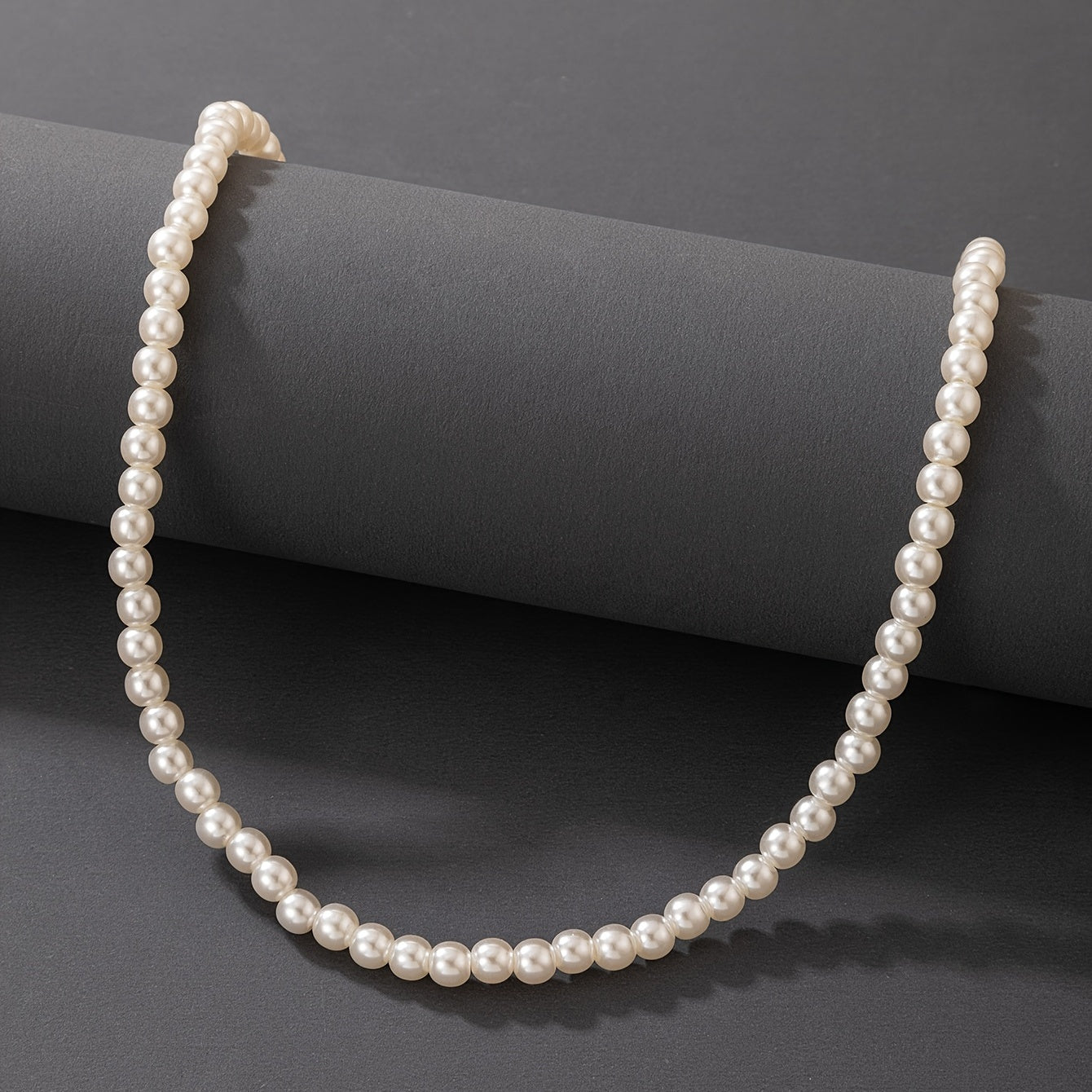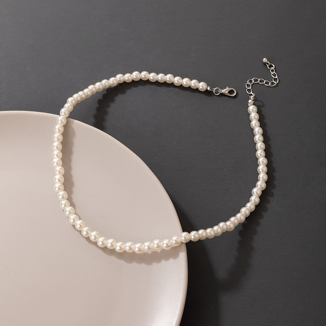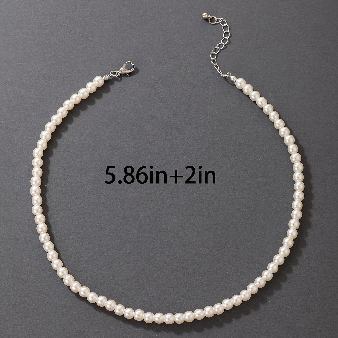 This elegant faux pearls beaded necklace is the perfect accessory to elevate your outfit. Its clavicle chain design adds a touch of sophistication and style to any look.