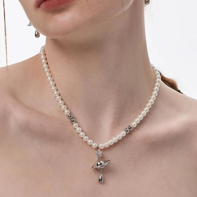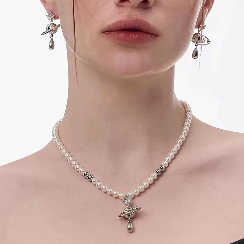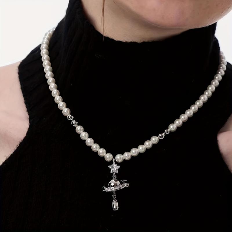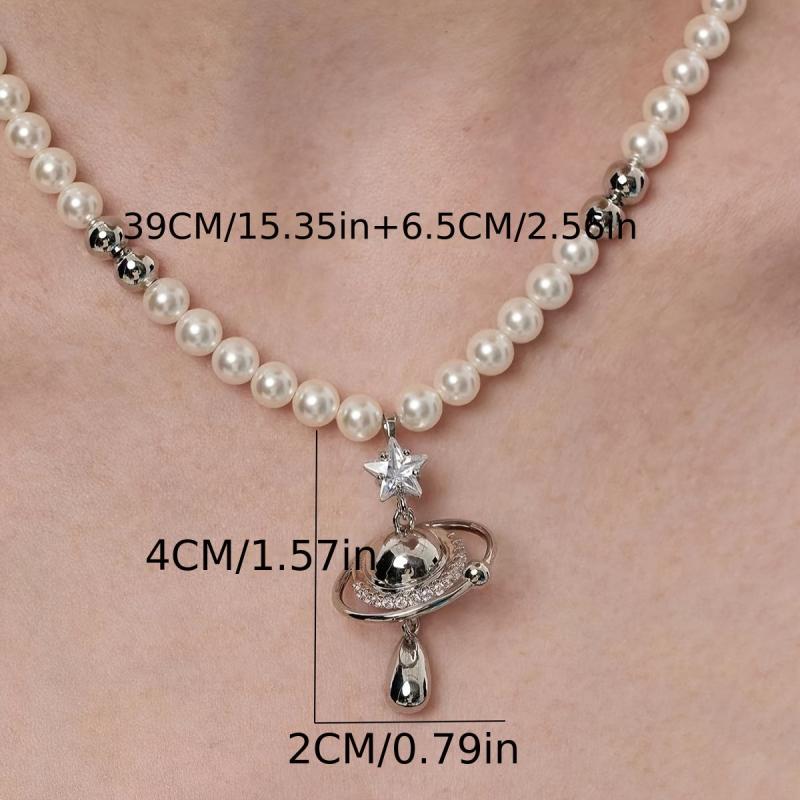 Elevate your style with this trendy Faux Planet Necklace featuring a star cubic collarbone chain.
