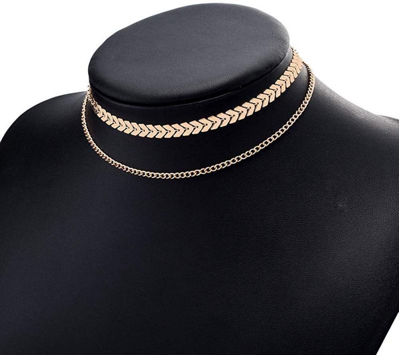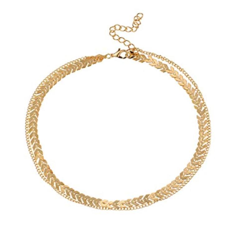 Elegant dual chain necklace with plated sequins fish bone design, perfect for girls, women, wife on birthdays, anniversaries, and special occasions.