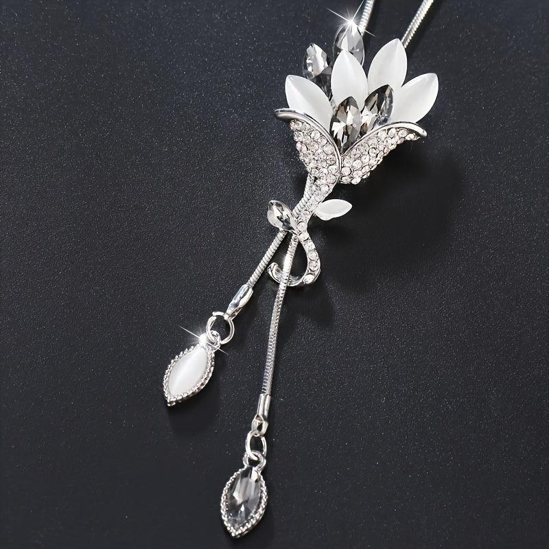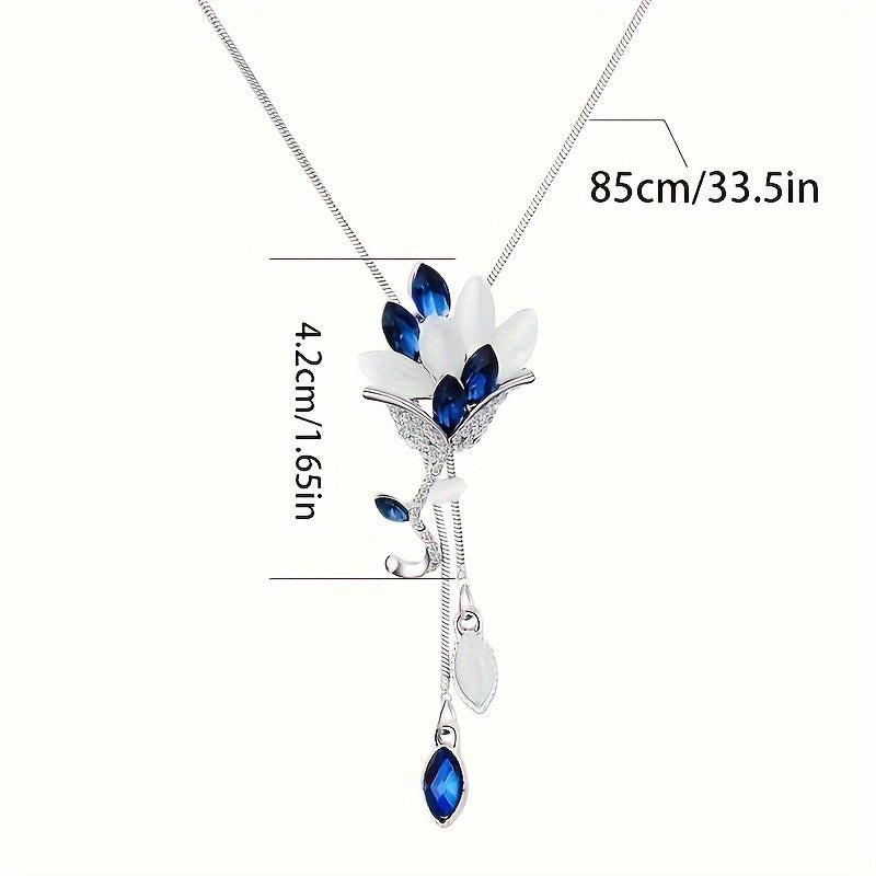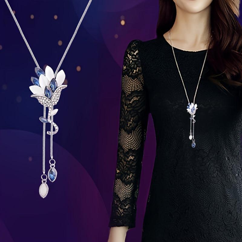 Elevate your casual attire with this stunning Arrival Floral Crystal Tassel Necklace. Made of zinc alloy with artificial crystals, this versatile piece is perfect for adding a touch of sophistication to any outfit.