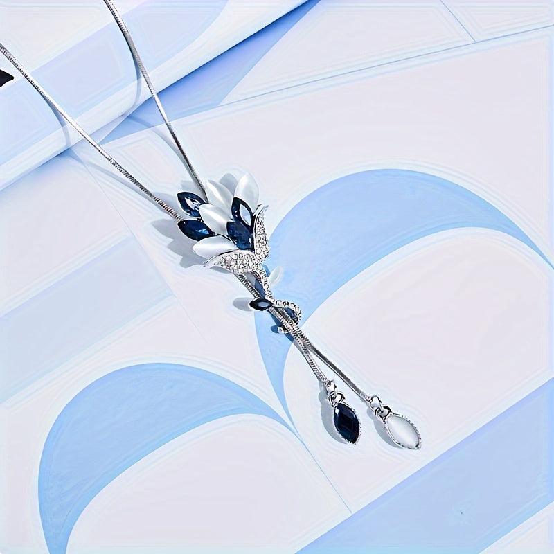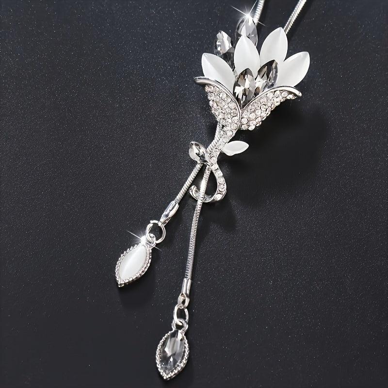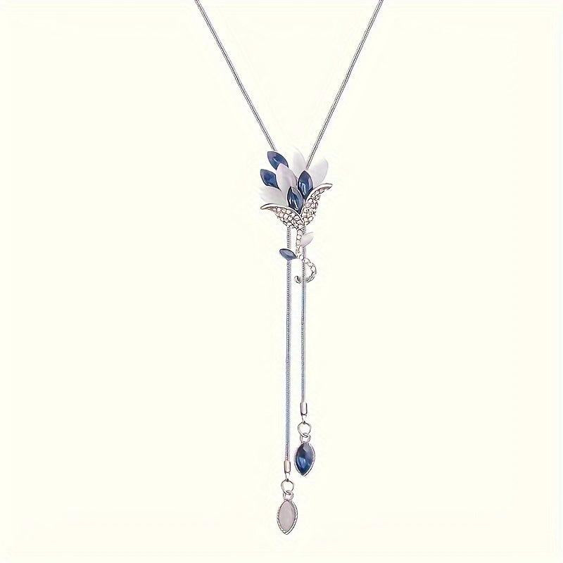 Elevate your style with this versatile floral tassel necklace featuring sparkling artificial crystals. Perfect for daily wear or formal occasions year-round.