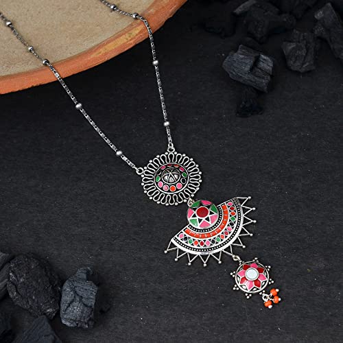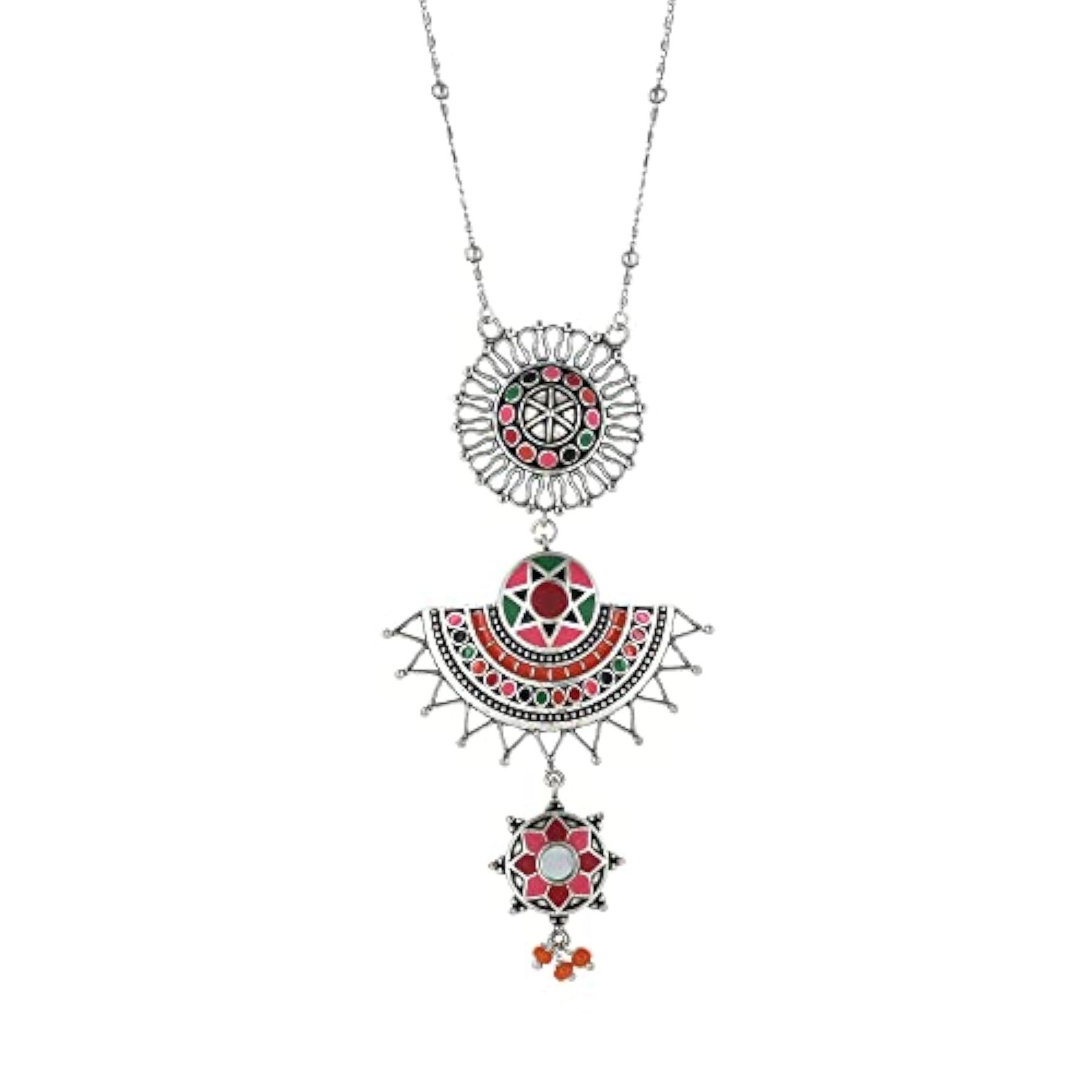 Stay stylish with this enchanting layered drop necklace featuring pink enamel details inspired by folklore.