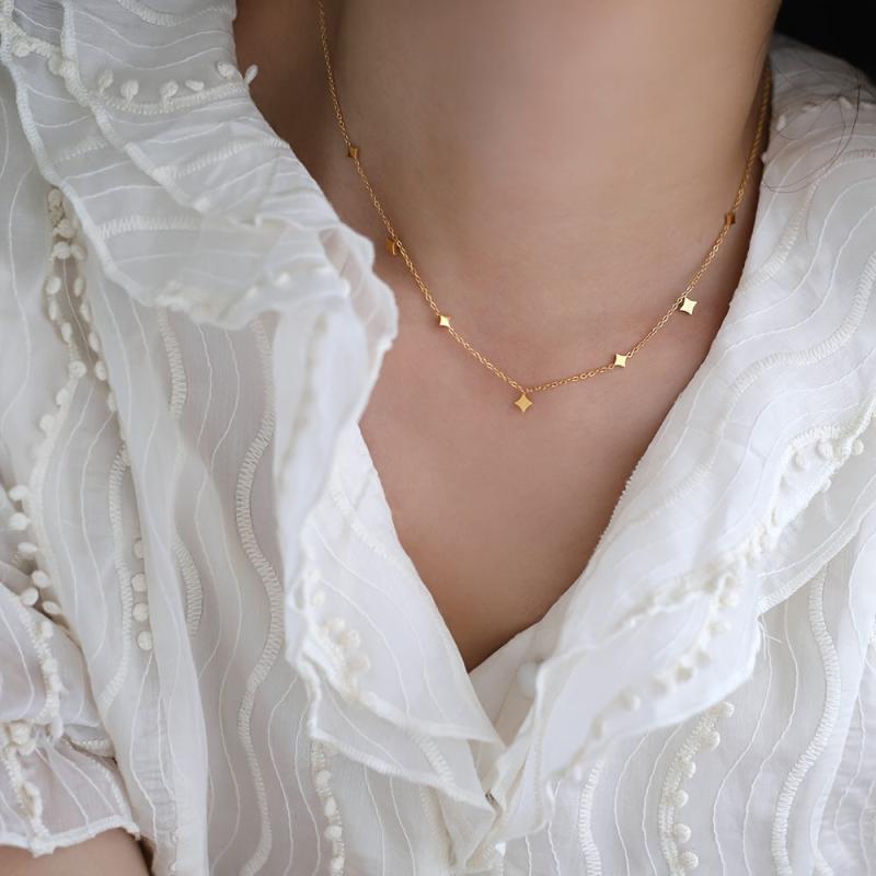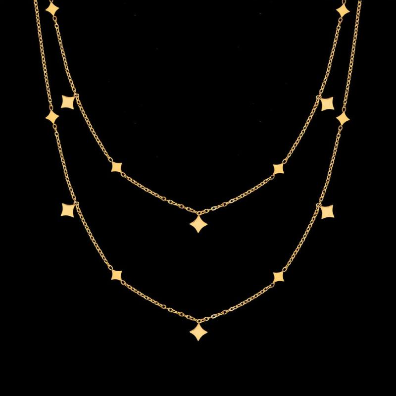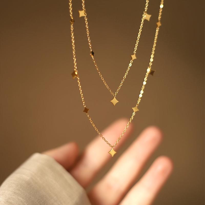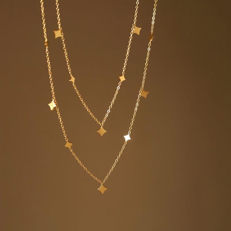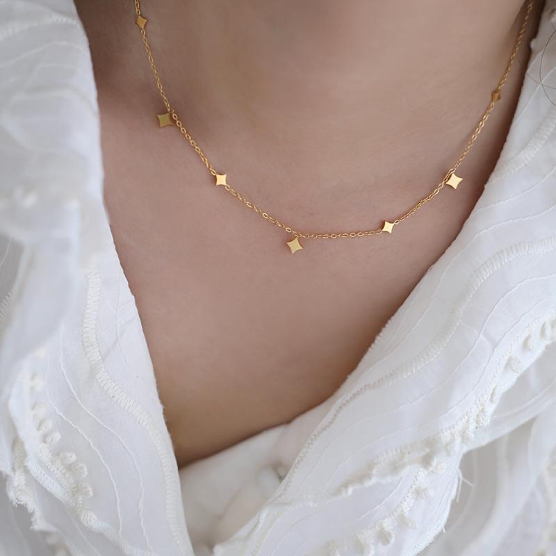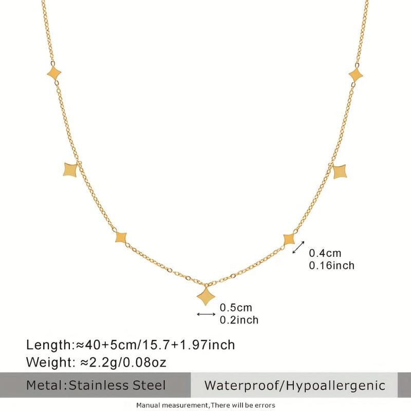 Elegant and stylish collarbone chain featuring seven cross stars and a compact short necklace. Made of high-quality 18K golden plated stainless steel that resists fading and rusting.