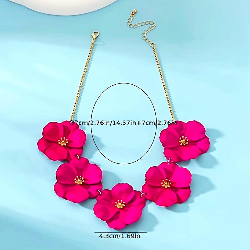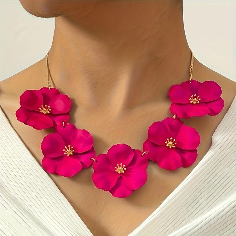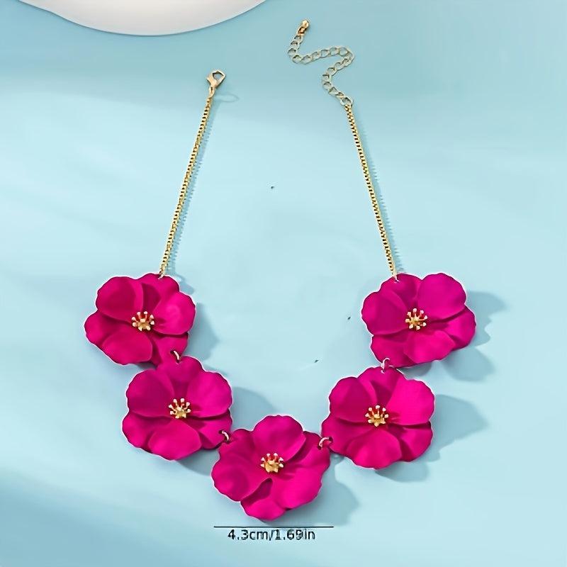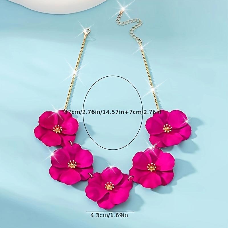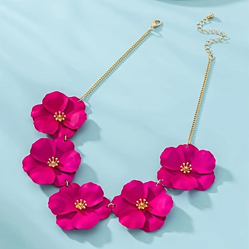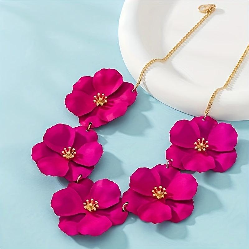 Elevate your style with this chic women's pendant necklace featuring a fuchsia dopamine flower design. Ideal for a special date or gift.