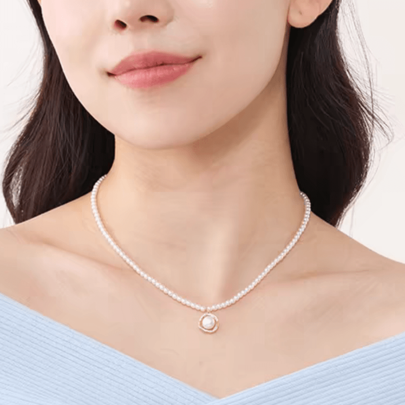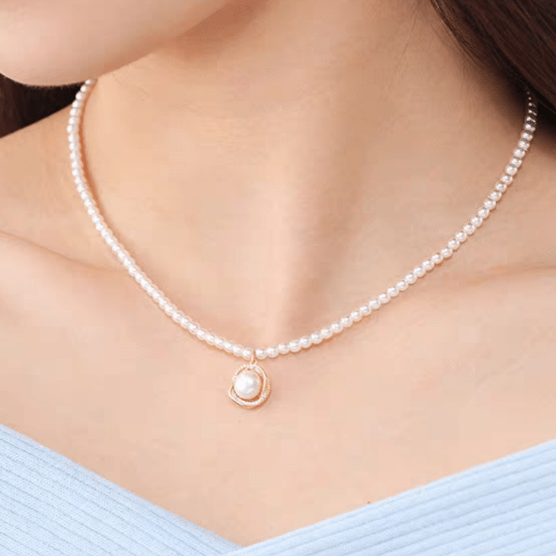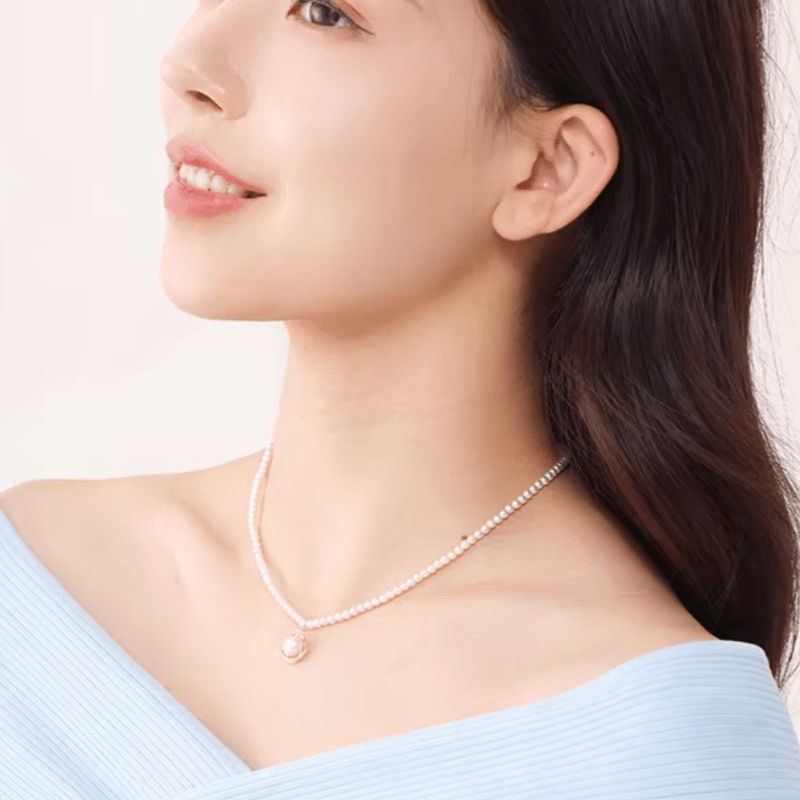 Elegant and classic collarbone chain featuring a geometric pattern with a minimalist shell necklace design. Hypoallergenic with a French end feel, perfect for a stylish and sophisticated look.
