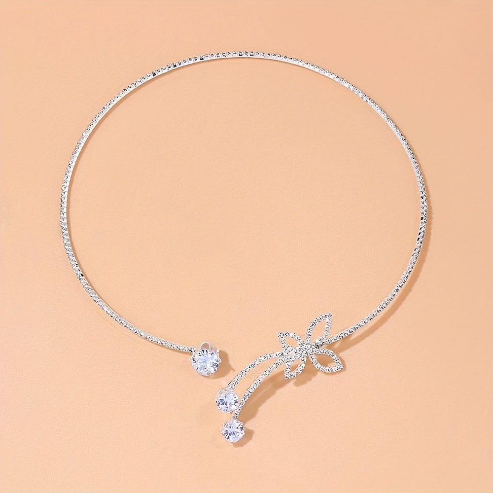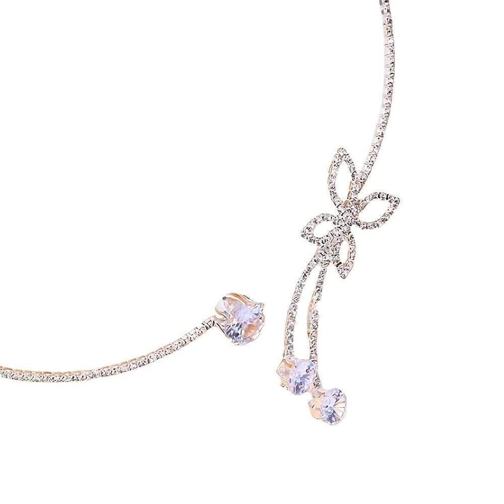 Elegant choker necklace with delicate glitter and artificial diamonds, featuring a butterfly-shaped chain. Perfect jewelry accessory for both men and women.
