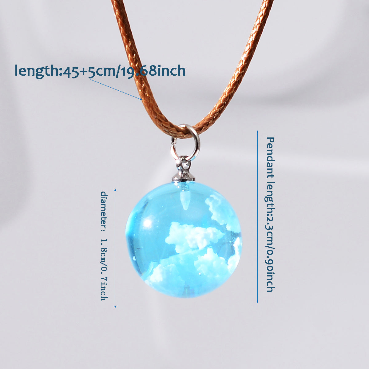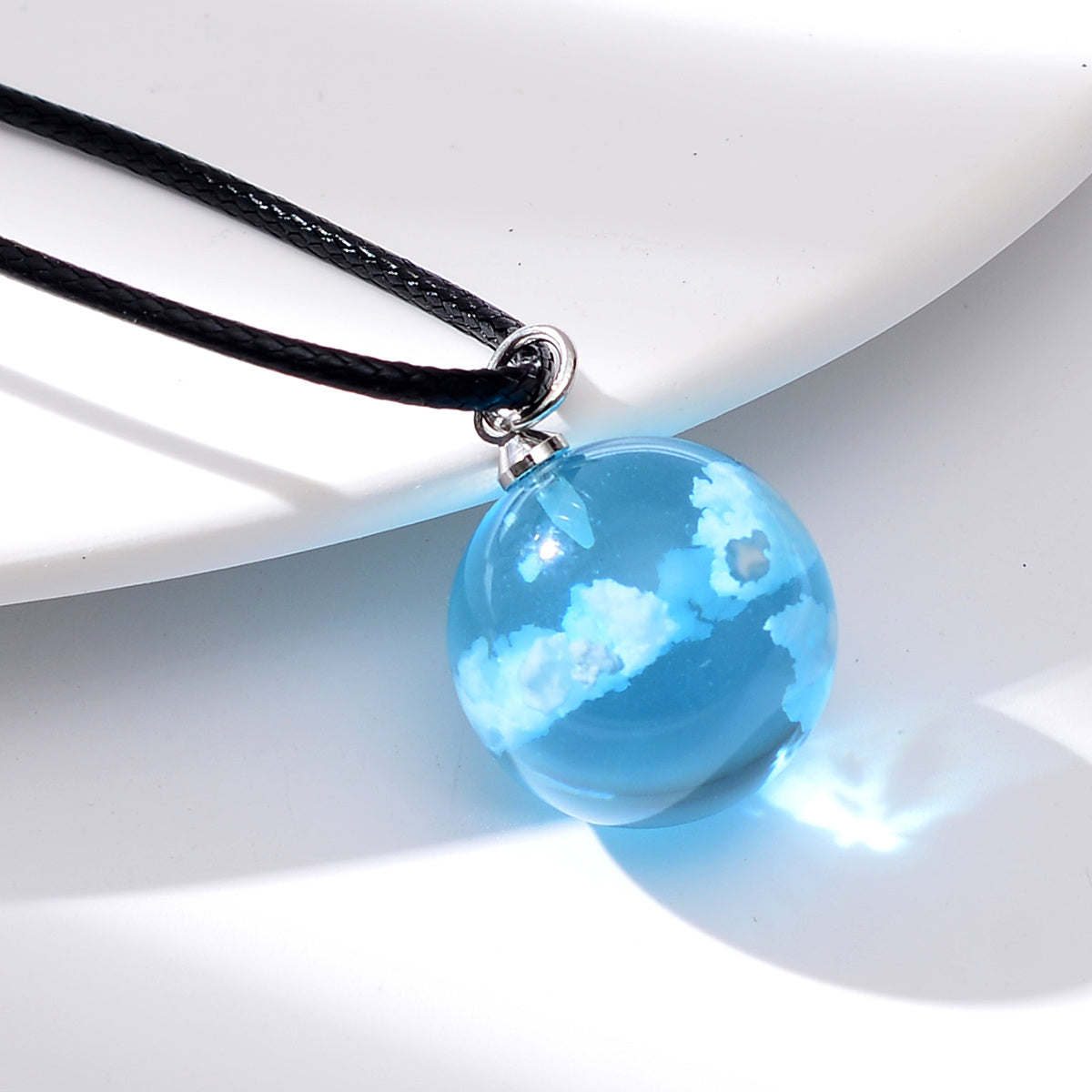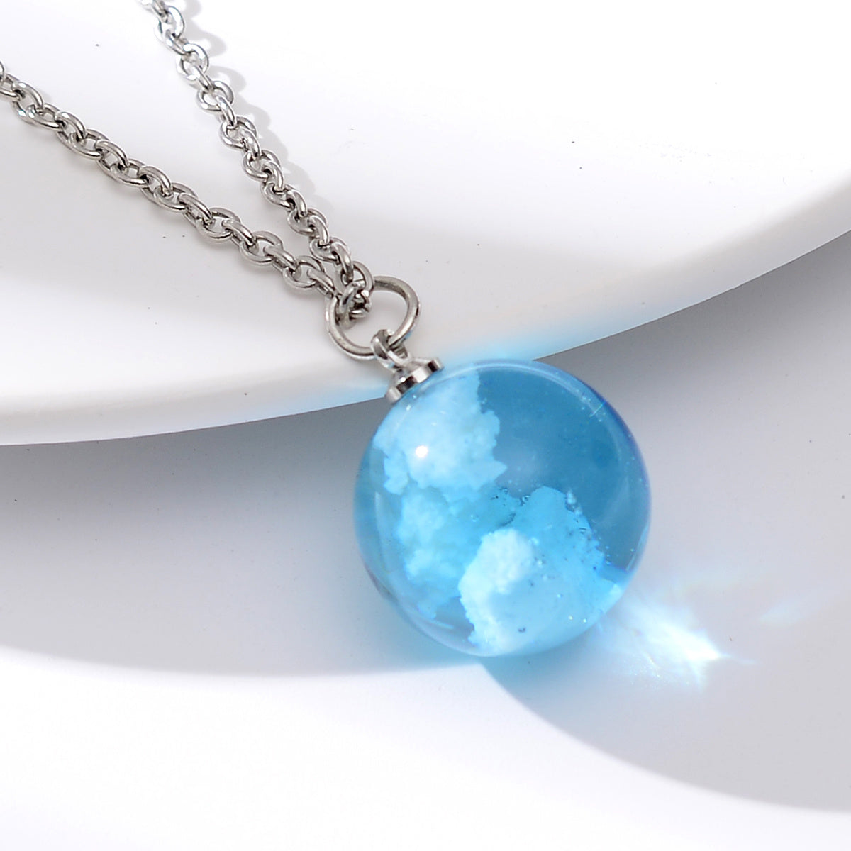 This necklace features a transparent ball pendant filled with sky clouds and a moon, perfect for adding a touch of celestial charm to your look. The nightglow effect provides a mystical ambiance.
