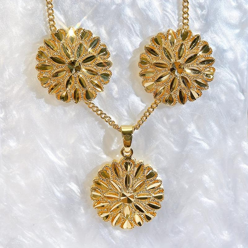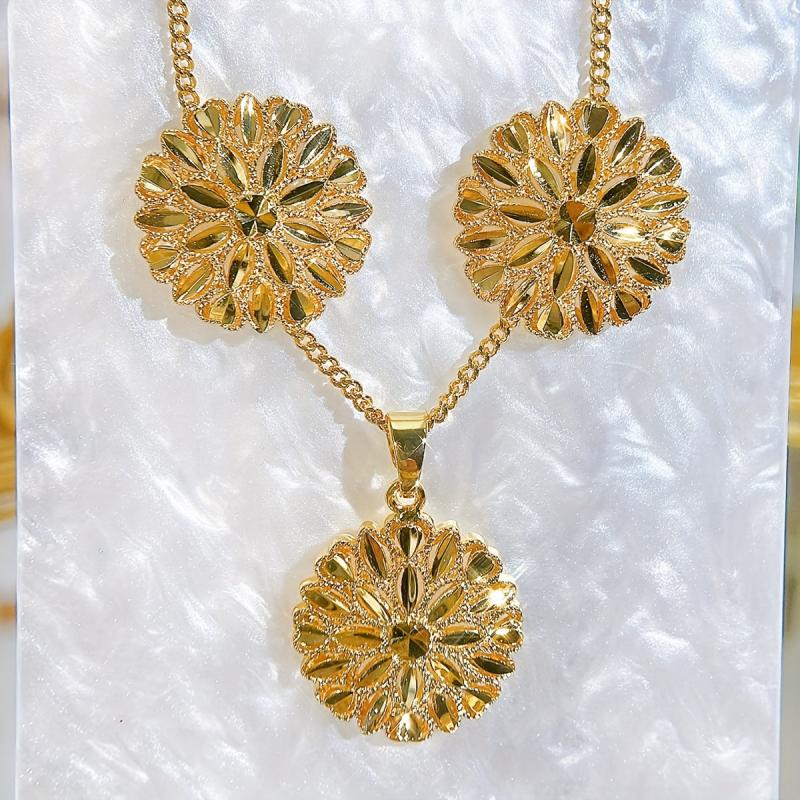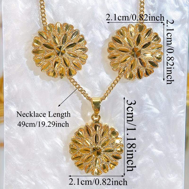 Elegant jewelry set featuring floral teardrop earrings and necklace adorned with sparkling cubic zirconia. Perfect for special occasions or daily wear.