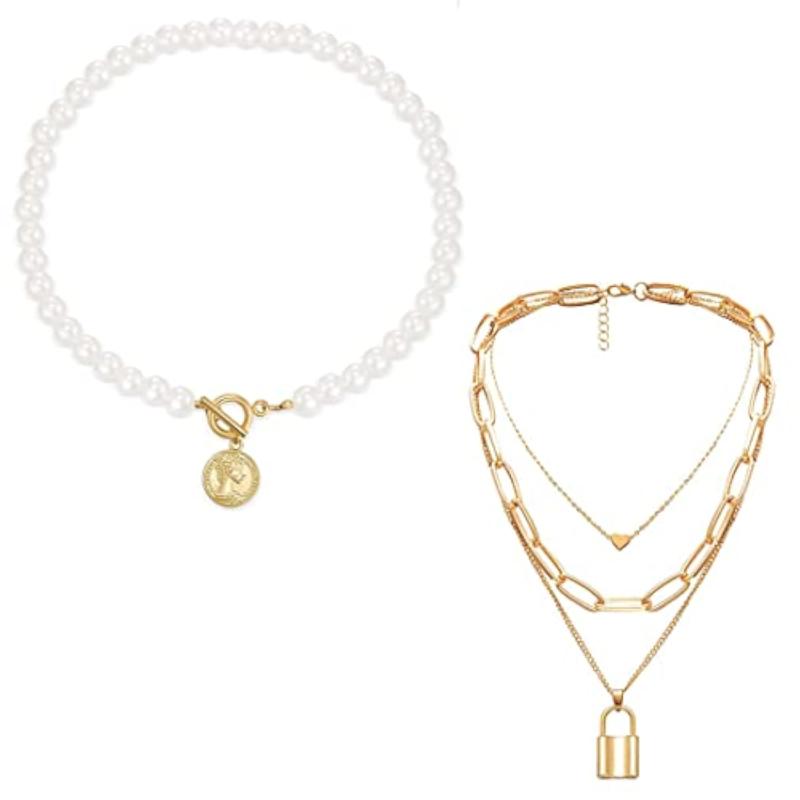 Elegant layered necklace set with gold plating for a chic look. Perfect for parties or daily wear.