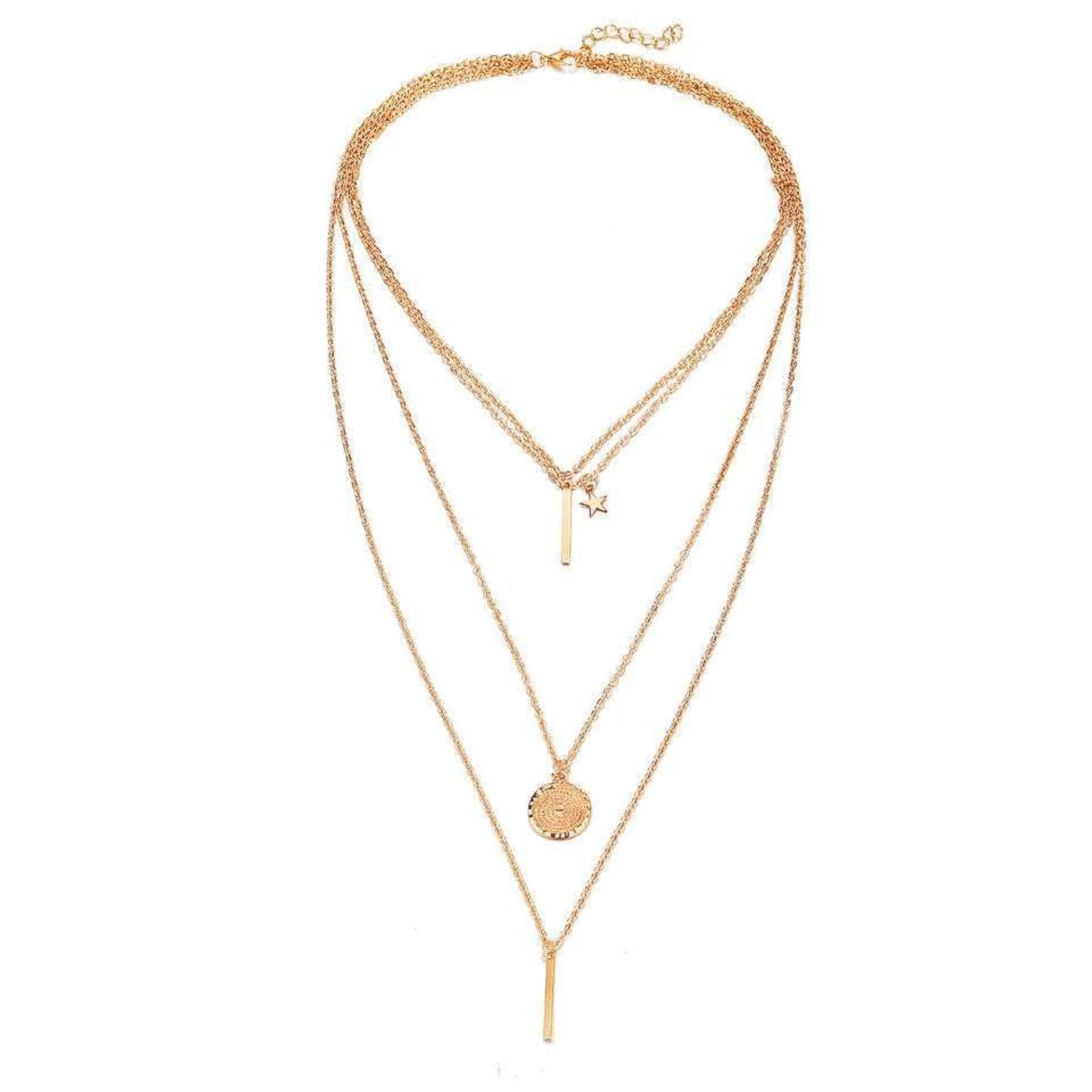 Elevate your style with this stunning gold multilayer necklace featuring a lobster claw clasp. Perfect for layering with other dainty necklaces or wearing on its own.