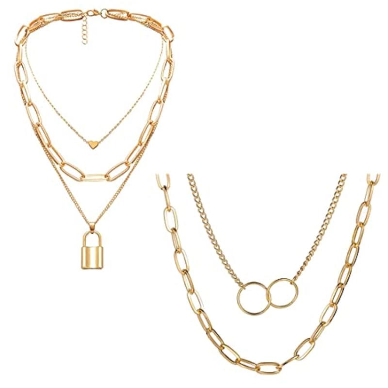 This stunning layered necklace set features a luxurious gold-plated finish, adding an elegant touch to any outfit.