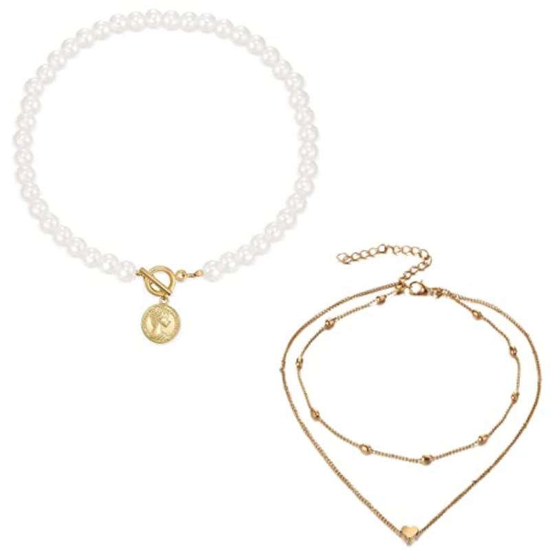 Elevate your style with this set of 2 gold-plated layered necklaces. Perfect for any occasion, these necklaces add a touch of glamour to your outfit.
