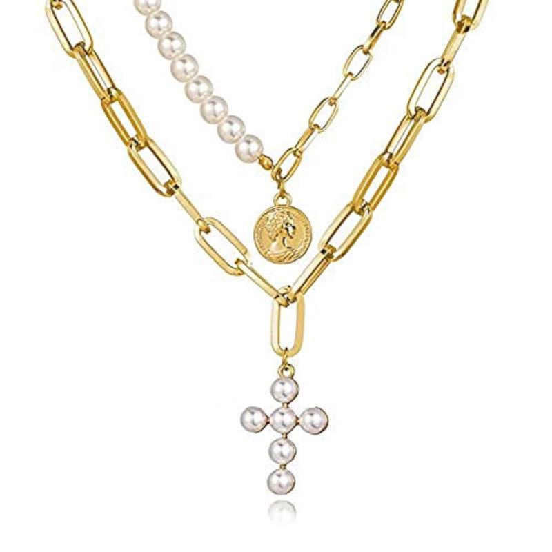 Elevate your style with this stunning gold-tone plated layered necklace. Perfect for adding a touch of elegance to any outfit.