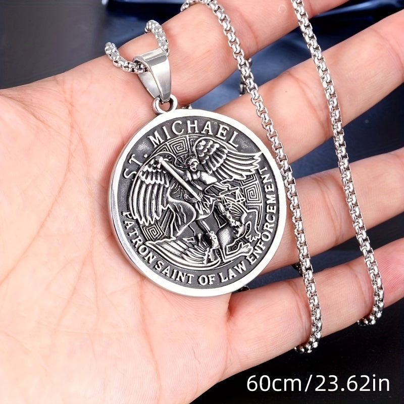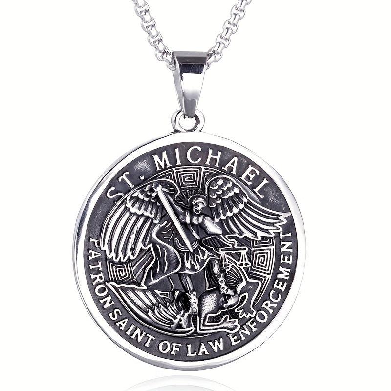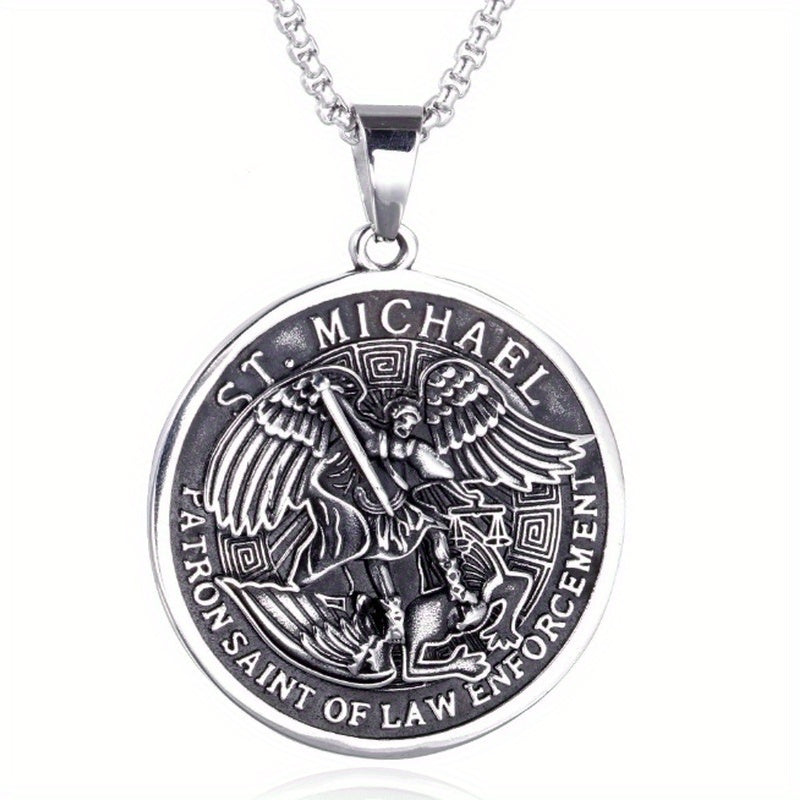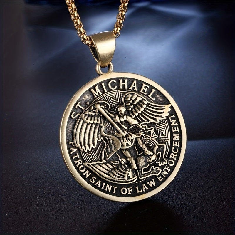 This classic pendant necklace features a vintage design with a golden Archangel disc. It is a perfect accessory that adds personality to your style.