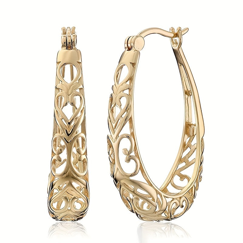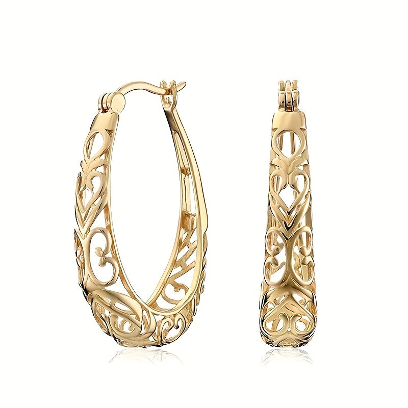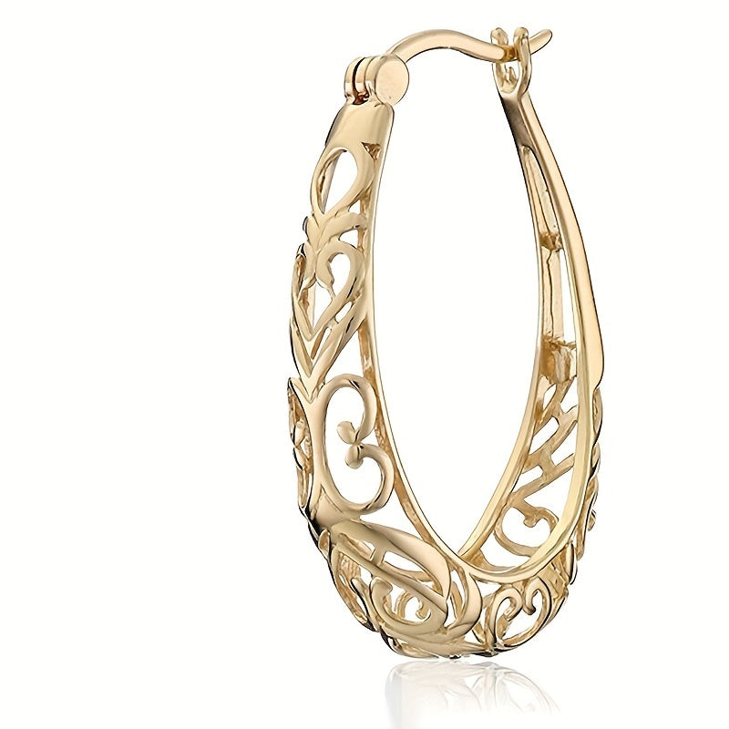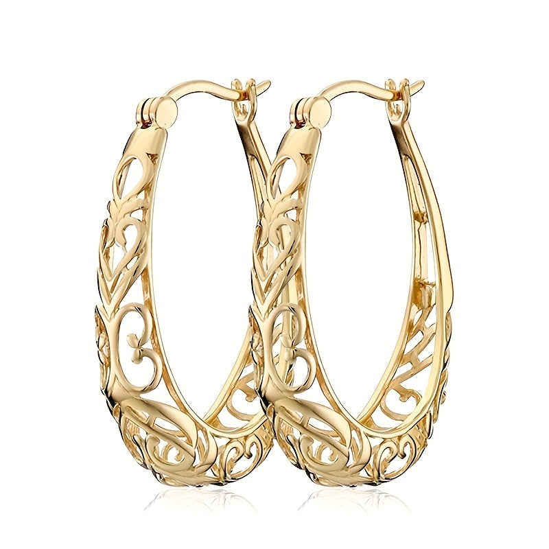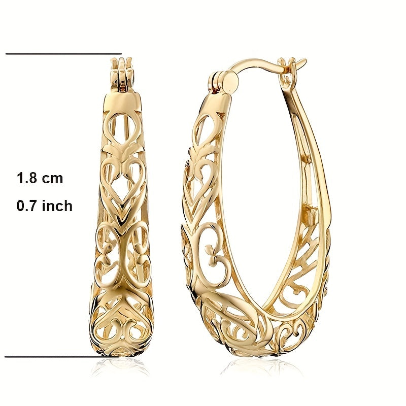 Enhance your look with these elegant hoop earrings featuring a retro style design. Crafted from copper and 18k gold plated, this jewelry piece is a perfect gift for women and girls.