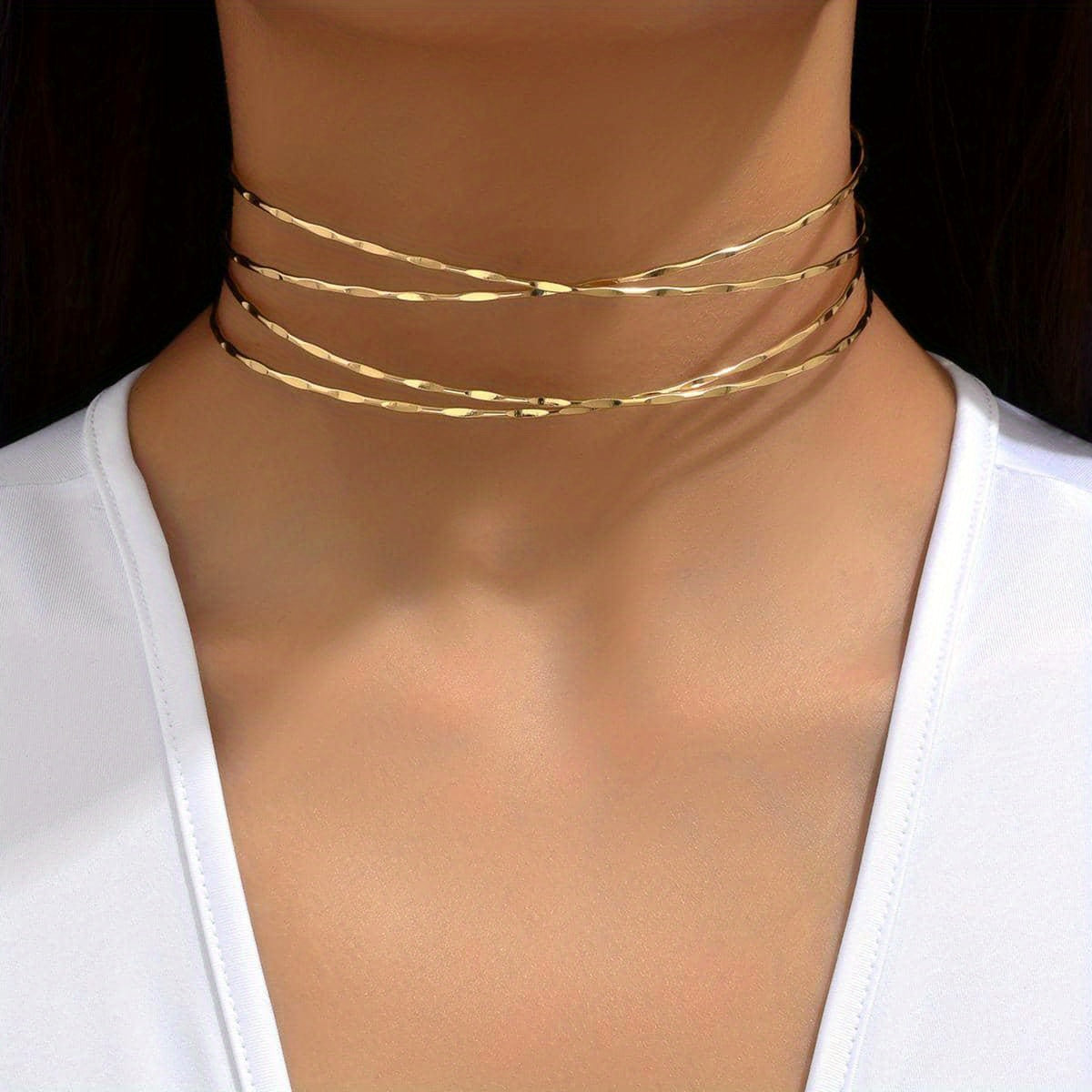 Add a touch of elegance with this stunning Golden Multilayer Cross Collar choker. Perfect for enhancing any outfit with a stylish golden decoration.