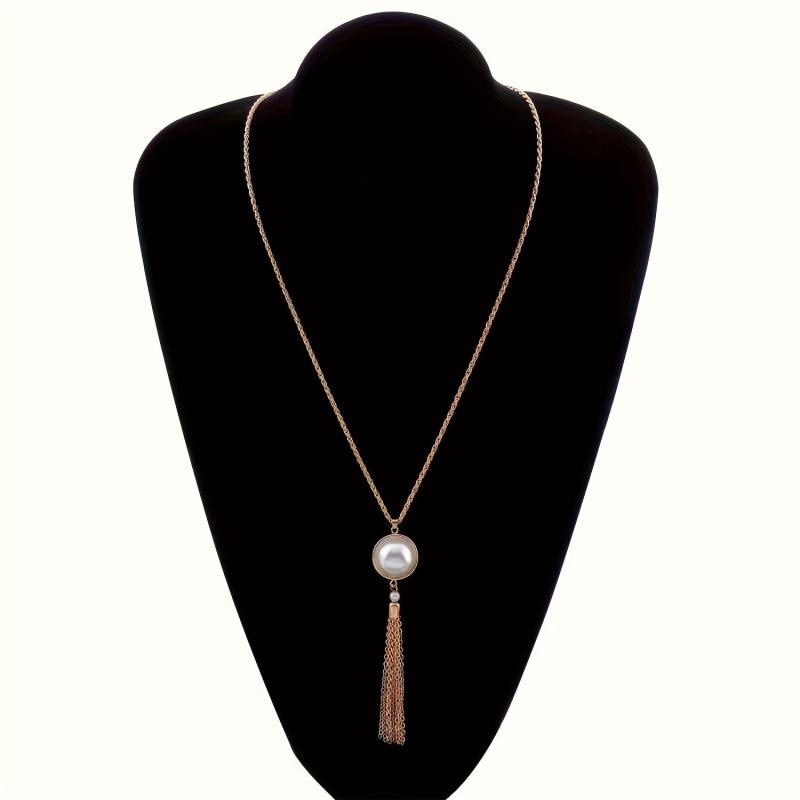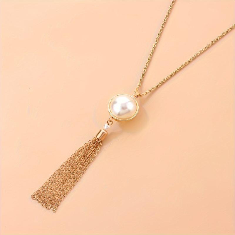 Add a touch of elegance to your outfit with this golden pendant necklace featuring a twisted chain tassel and semi-circular artificial pearl. Perfect for daily wear.