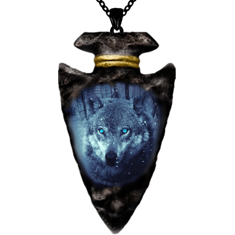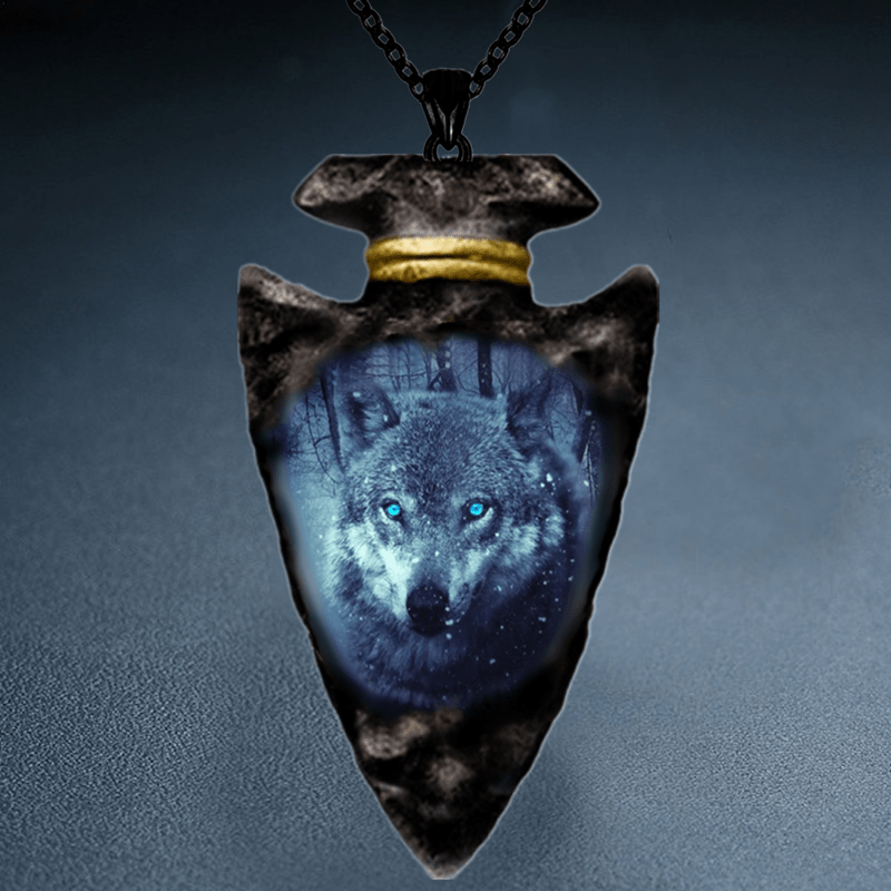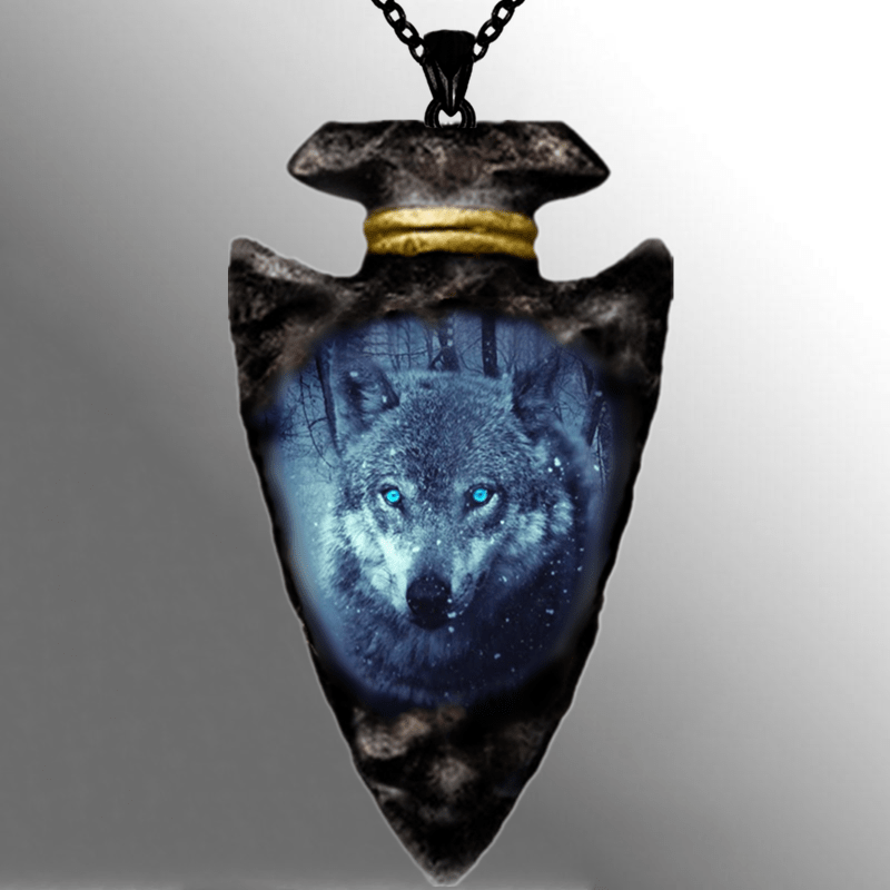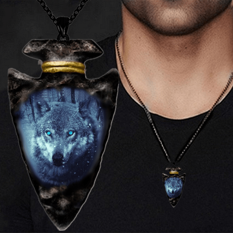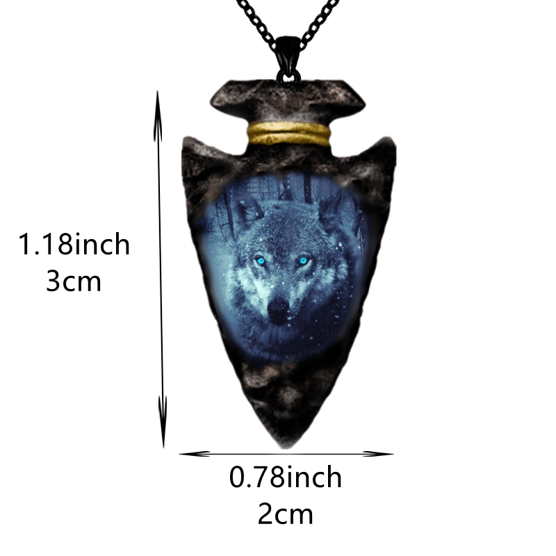 This gothic men's necklace features a detailed wolf head pendant on a triangle chain.