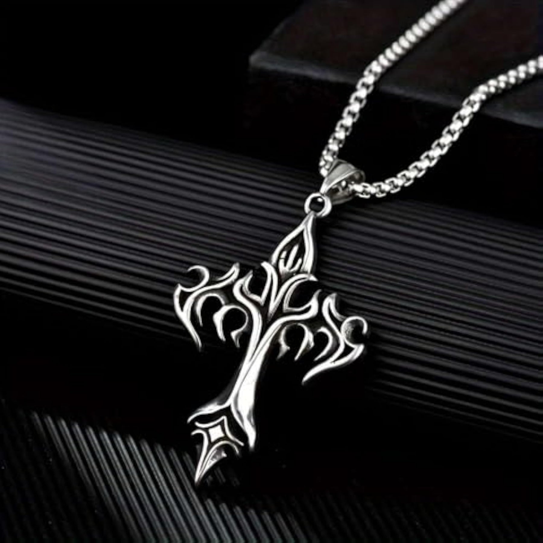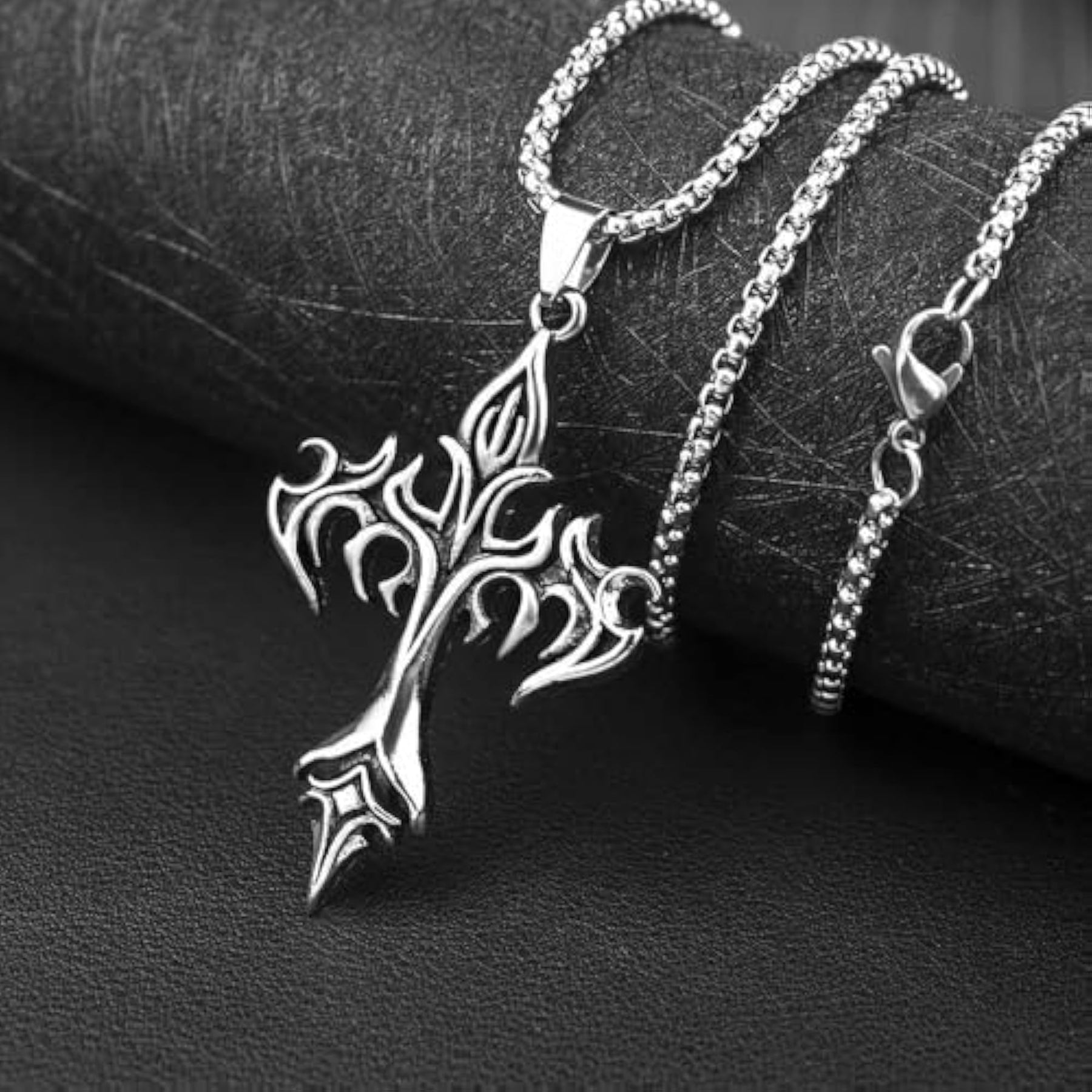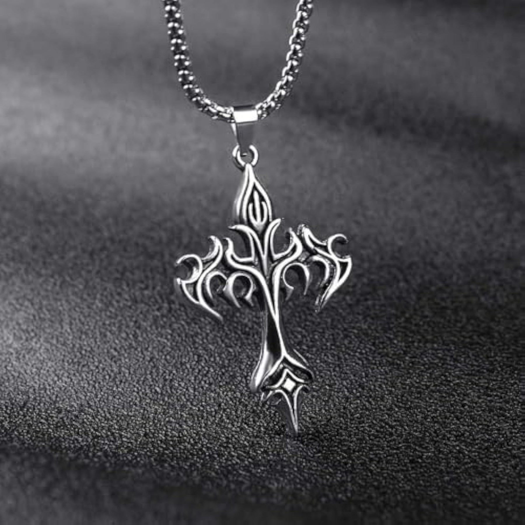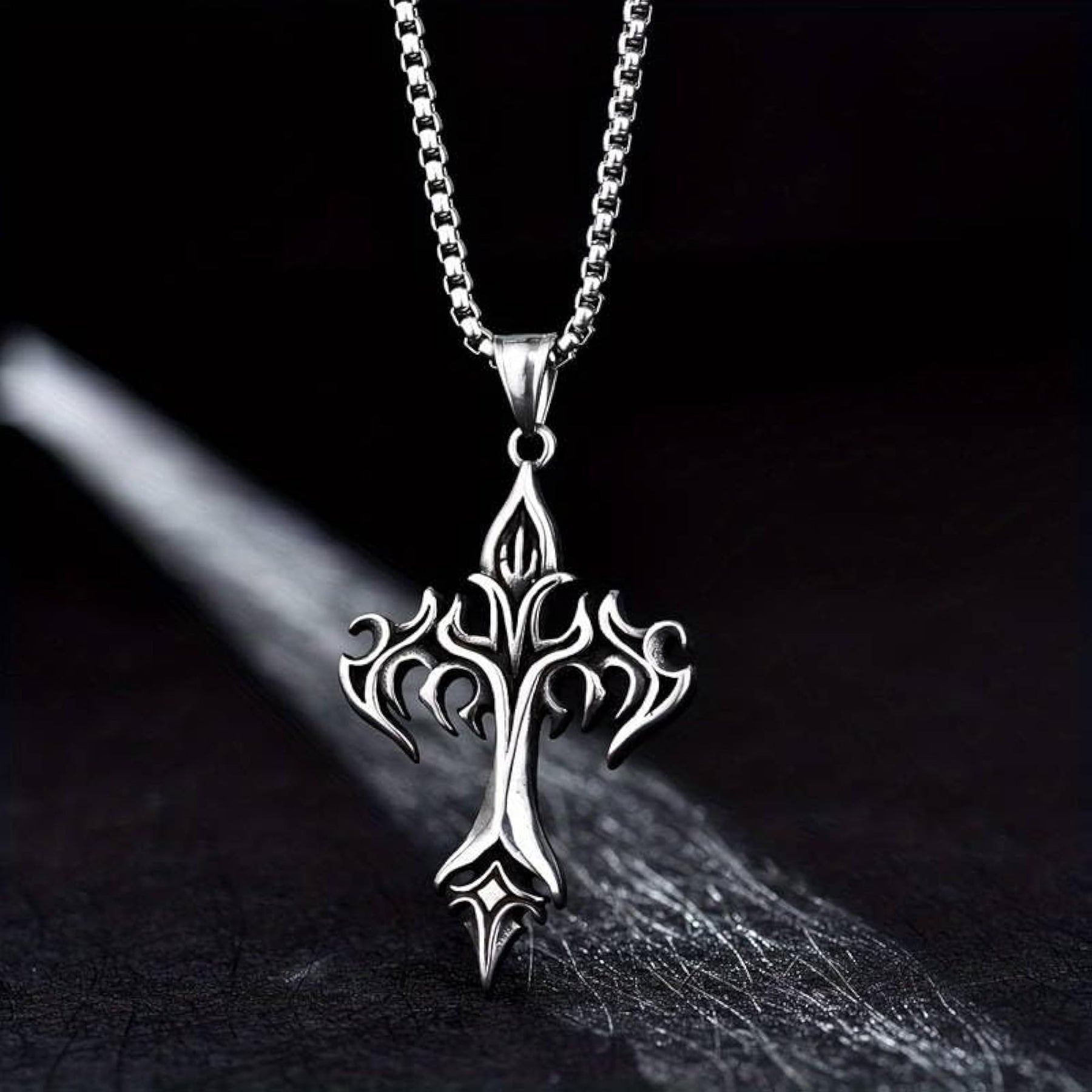 Embrace a touch of vintage style with this Gothic stainless steel flame cross pendant necklace, perfect for Christian jewelry enthusiasts.