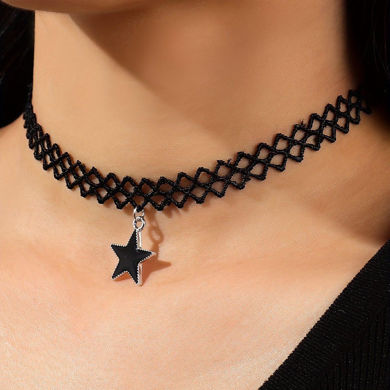 Add a touch of vintage charm to your outfit with this elegant Gothic style lace star collarbone necklace. Perfect for parties or special occasions.