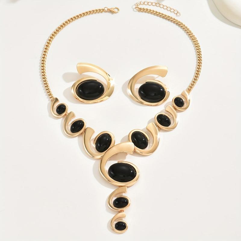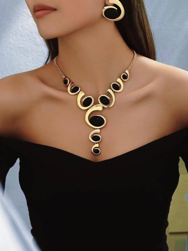 Elevate your look with this stunning two-piece jewelry set featuring a rhinestone-adorned spiral snail shell necklace and matching earrings. Perfect for adding a touch of glamour to any outfit.