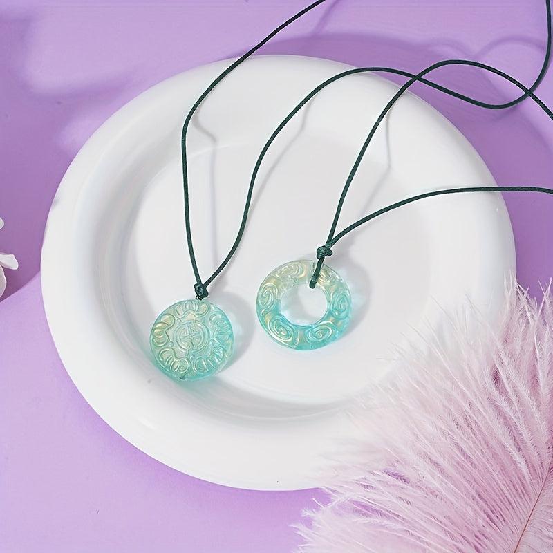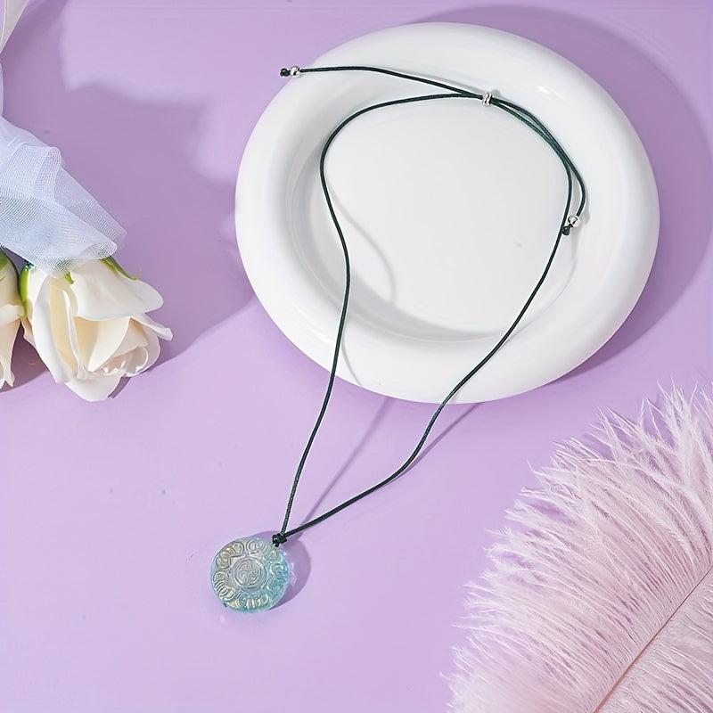 This stylish glass pendant necklace is a perfect accessory for daily wear or special occasions. It features a beautiful green circular pendant that adds a touch of elegance to any outfit. Great as a gift for St. Patrick's Day or Valentine's Day.