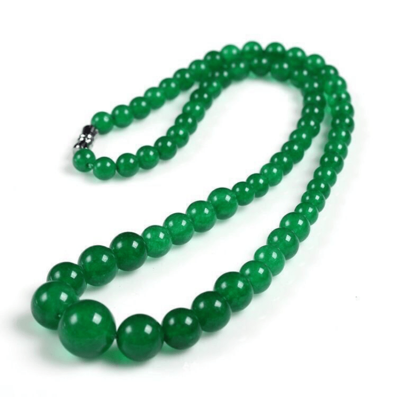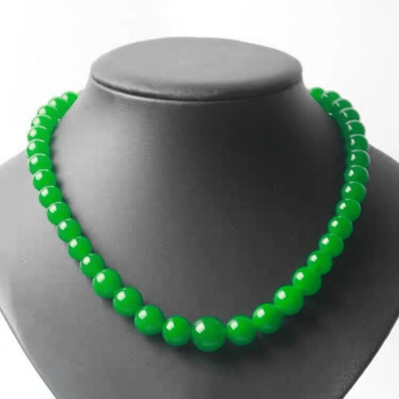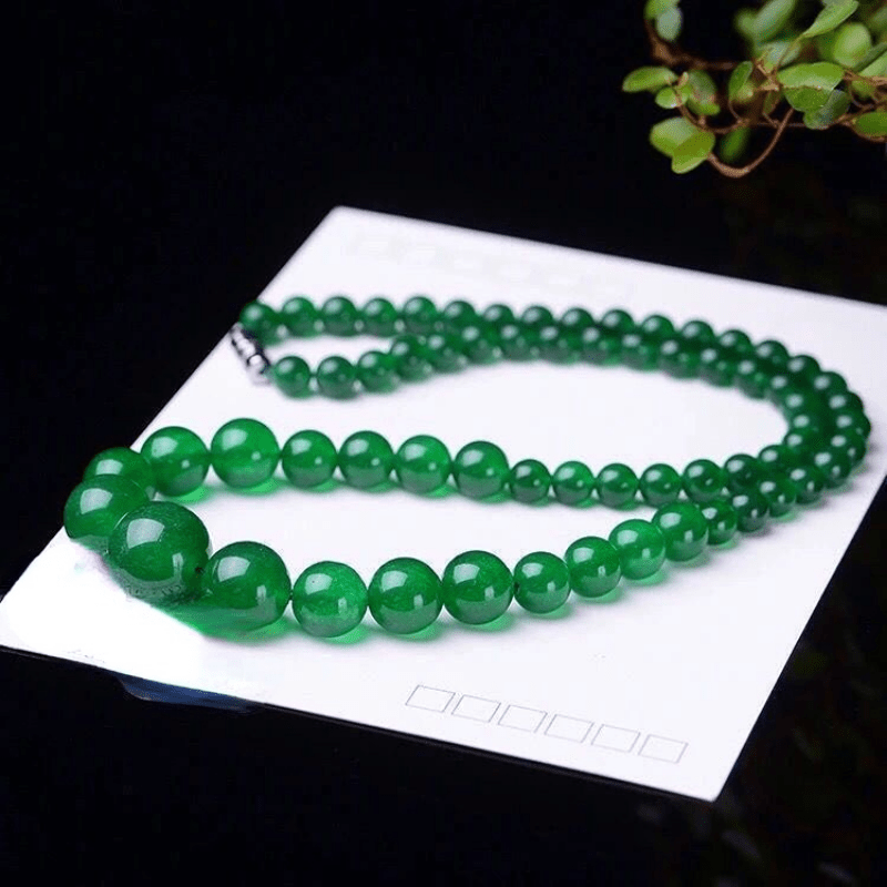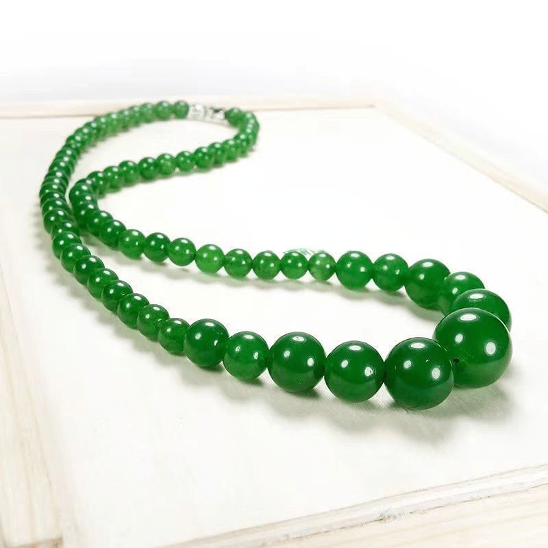 This stunning necklace features a green ice bottom spinach green design that is perfect for both men and women. It can be worn as a collarbone necklace with hanging beads, adding a touch of elegance to any outfit. Makes a great gift for loved ones.