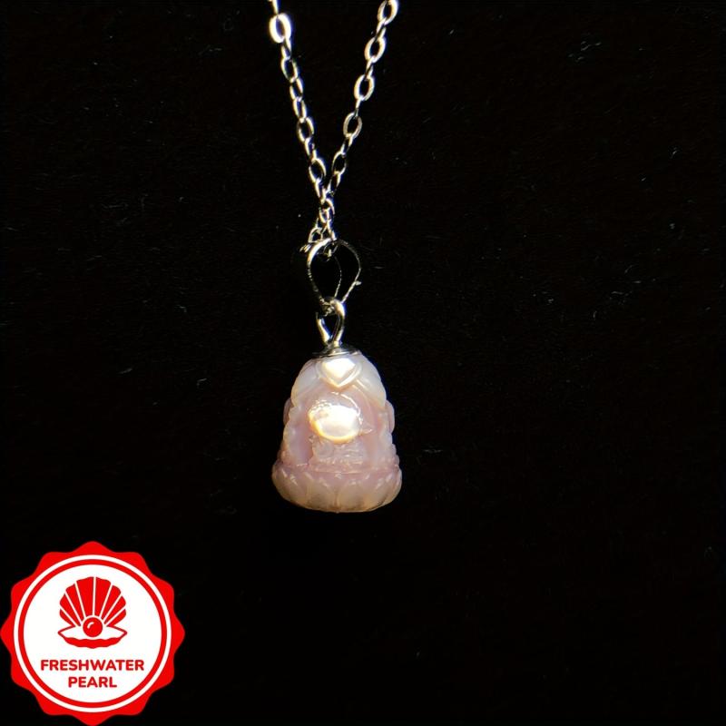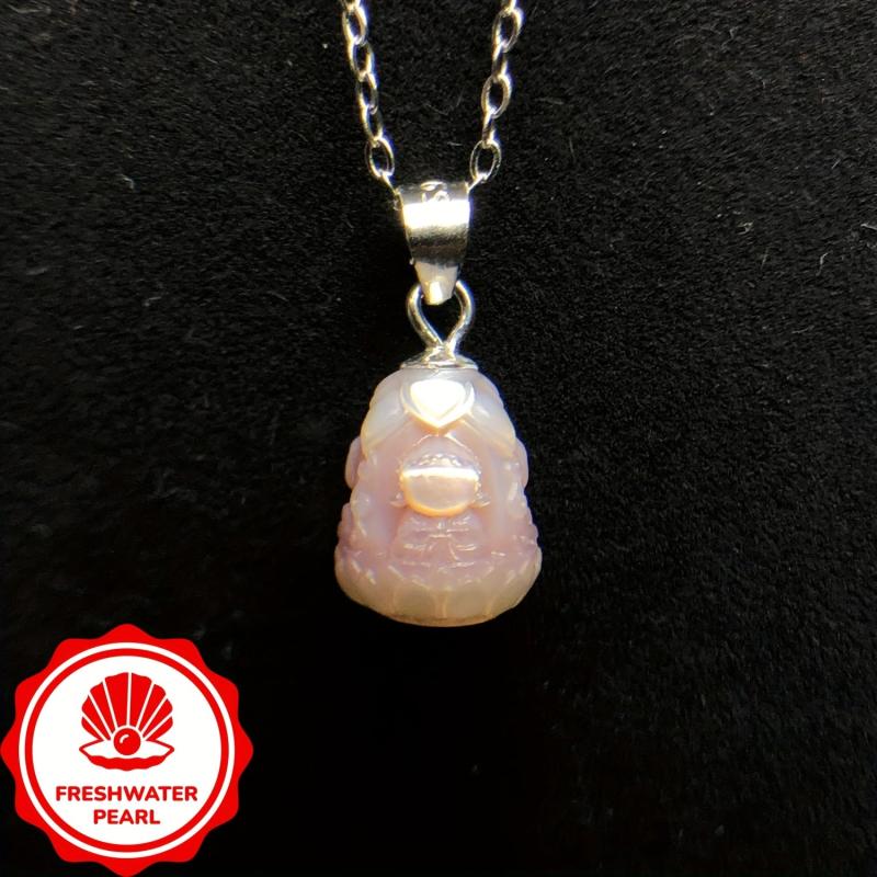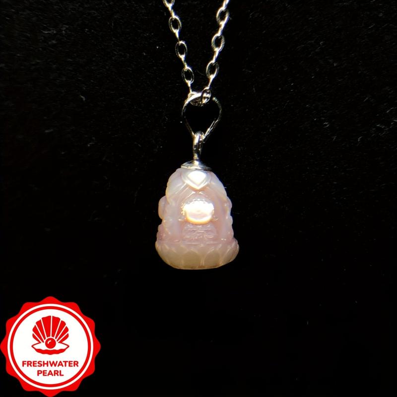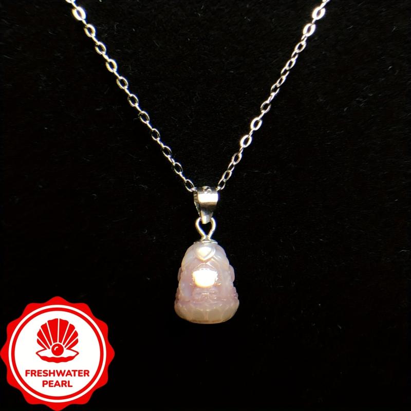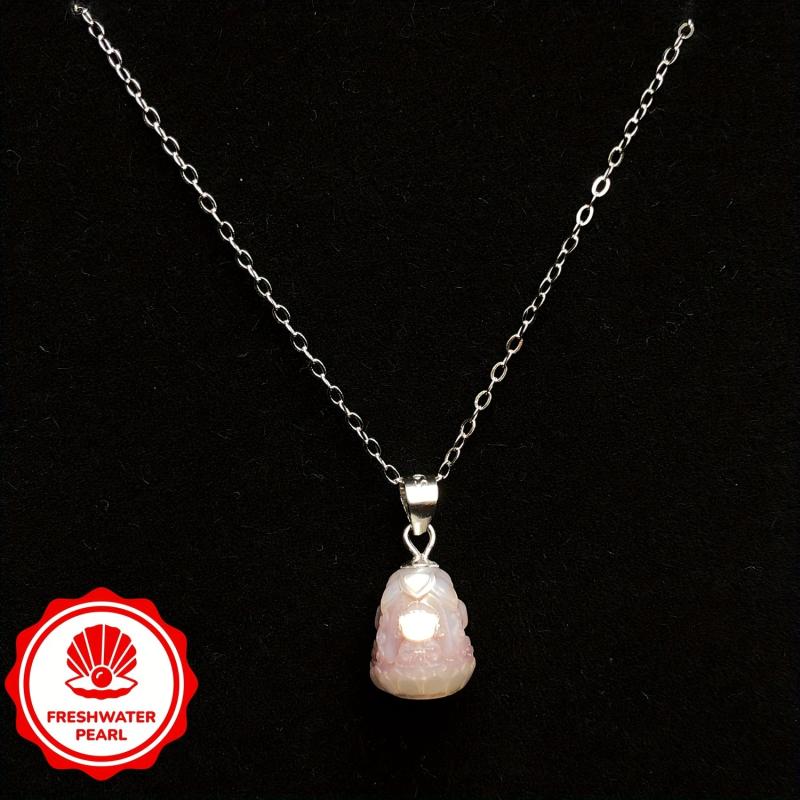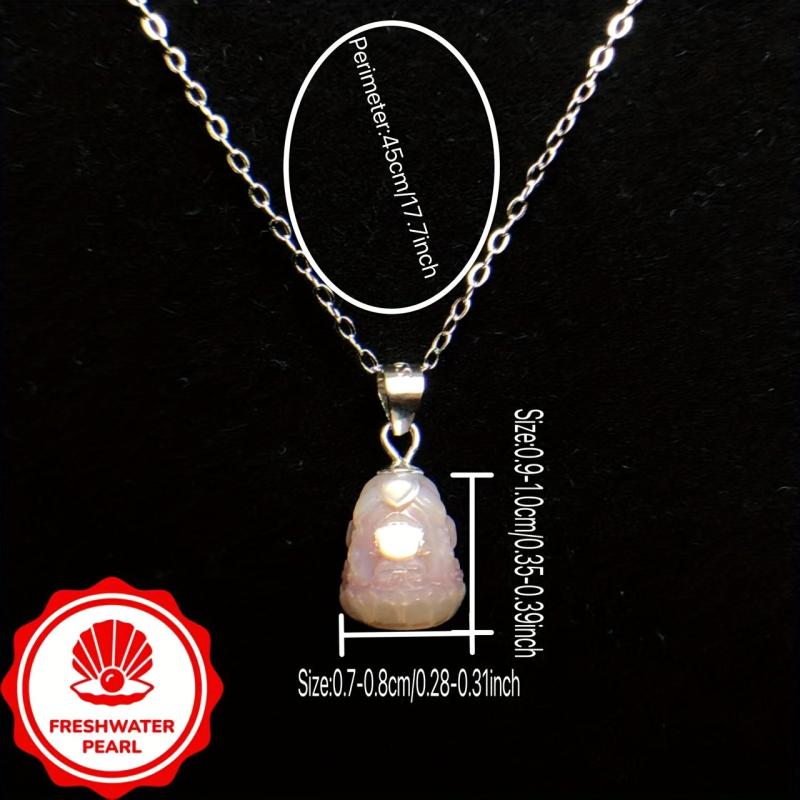 This beautiful necklace features a handcrafted freshwater pearl Buddha pendant in 925 sterling silver with three-sided carving. Perfect for daily wear or as a thoughtful gift.
