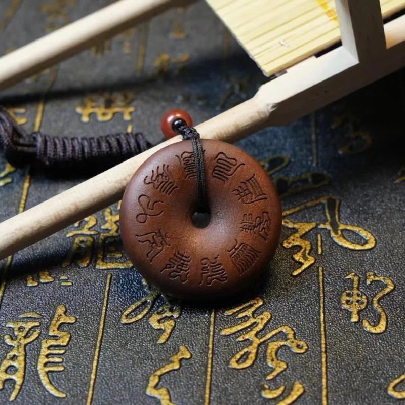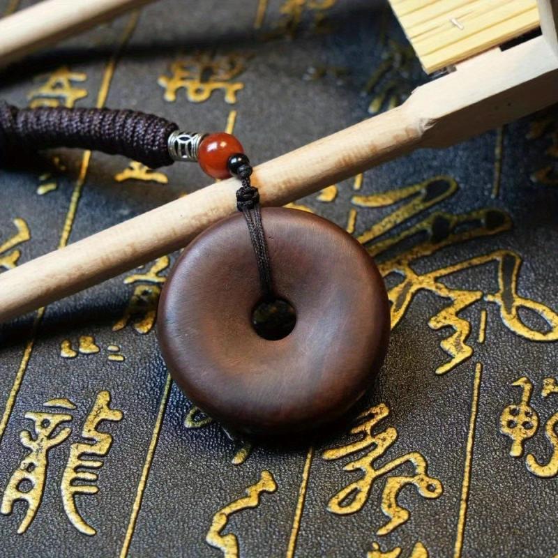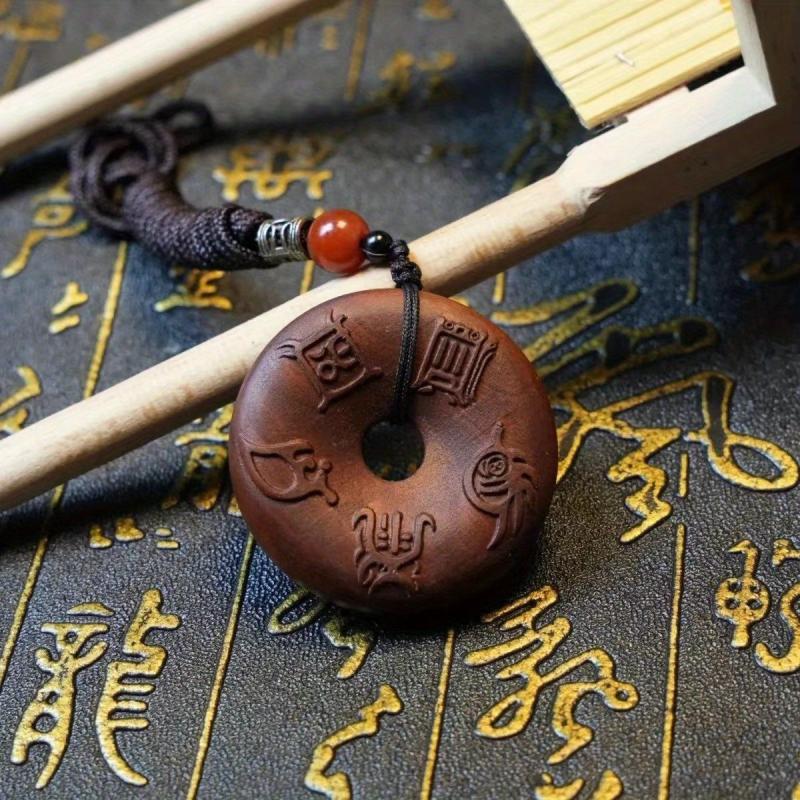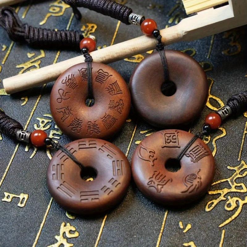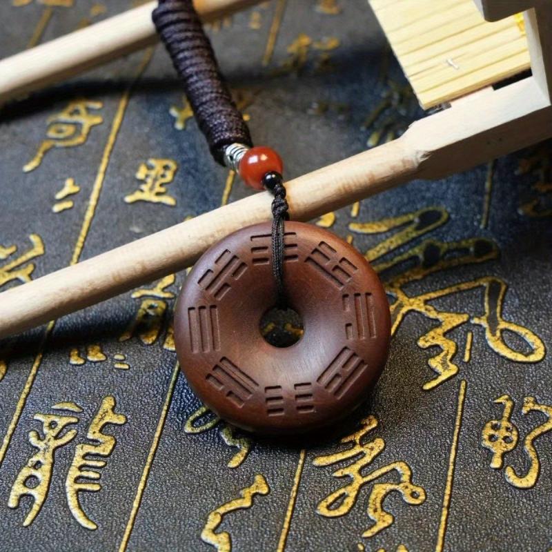 This wooden pendant combines a cross and traditional Chinese artwork, blending men's style with religious symbolism for a meaningful accessory.