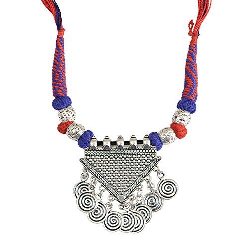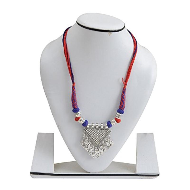 Add a touch of bohemian flair with this stunning tribal necklace. Handcrafted with intricate detailing in an antique silver finish, this piece is perfect for any occasion.