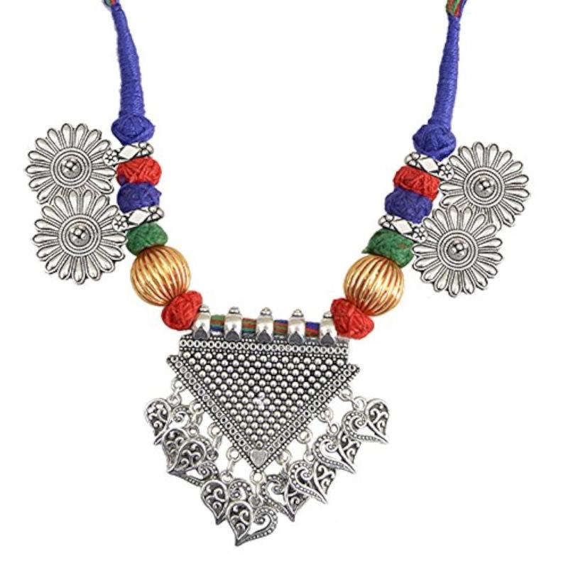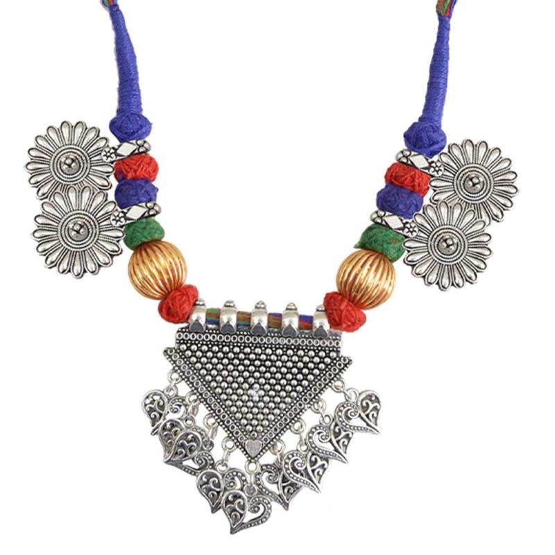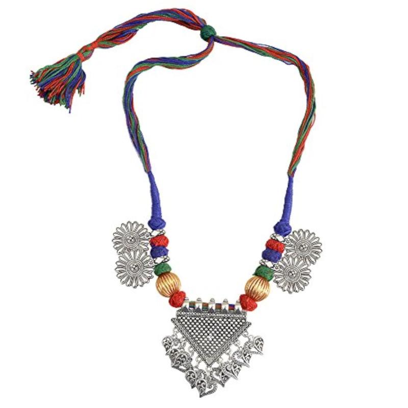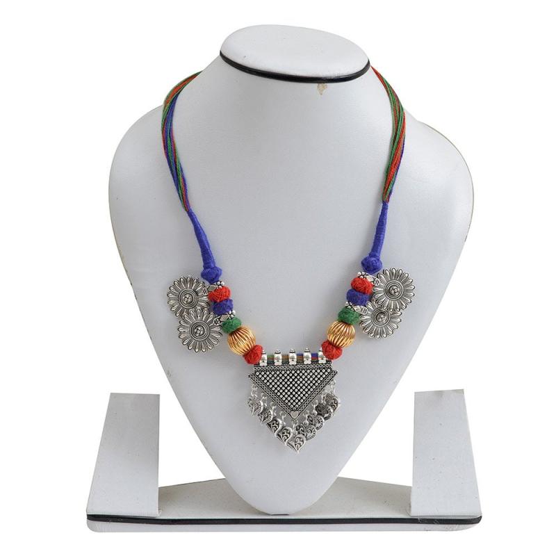 Elevate your look with this stunning handmade tribal necklace adorned with colorful beads and a stylish tassel.