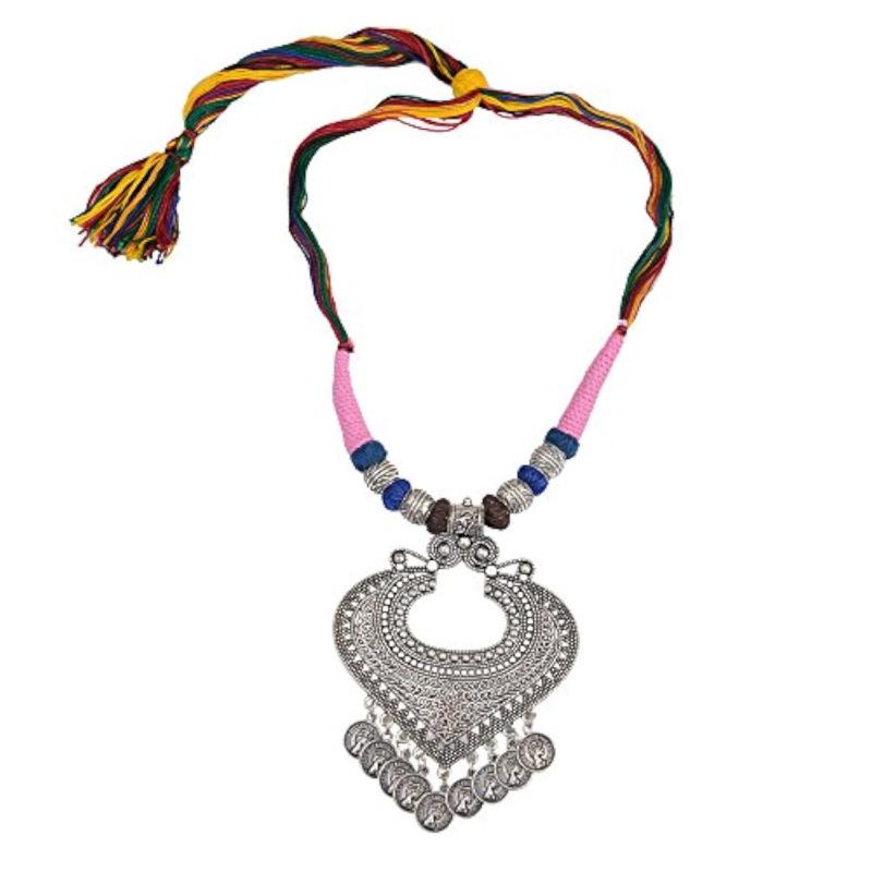 Enhance your style with this artisanal tribal necklace featuring intricate designs and vibrant colors.