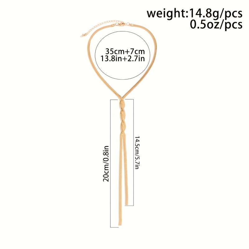 Elevate your casual attire with this sophisticated handwoven flat snake chain necklace featuring a long tassel design. A perfect gift option for women year-round.