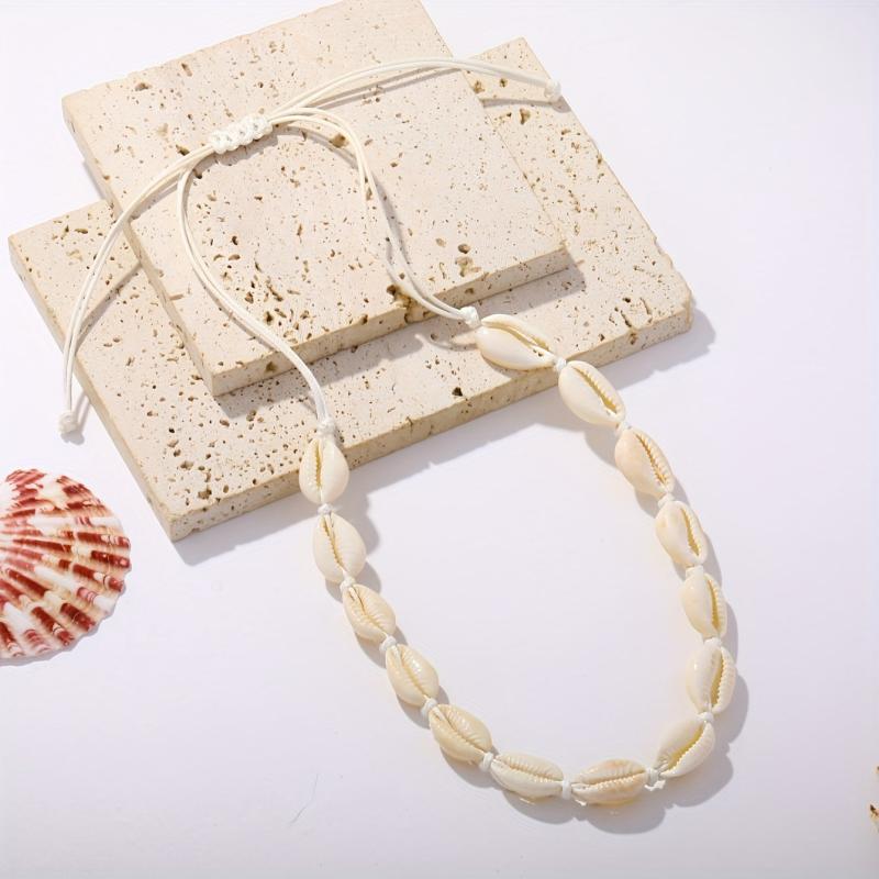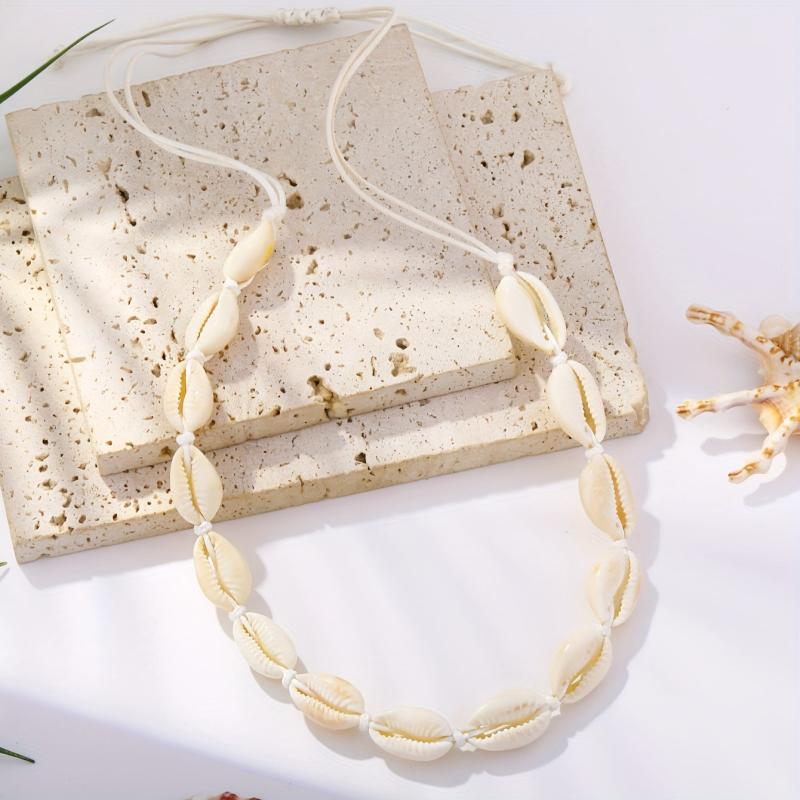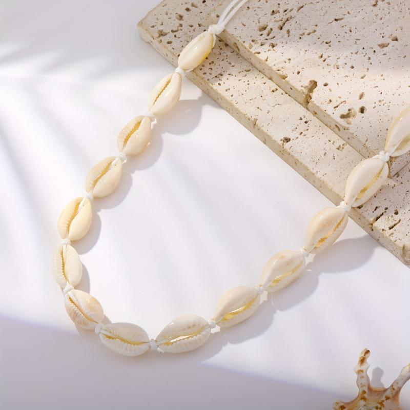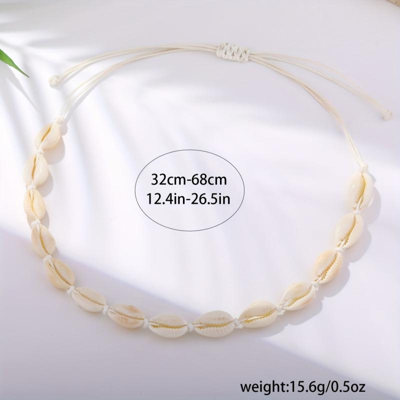 Elevate your look with this handwoven seashell necklace featuring natural bead strand and shell accents. Perfect for summer days, this breathable jewelry can be worn casually or for formal occasions.