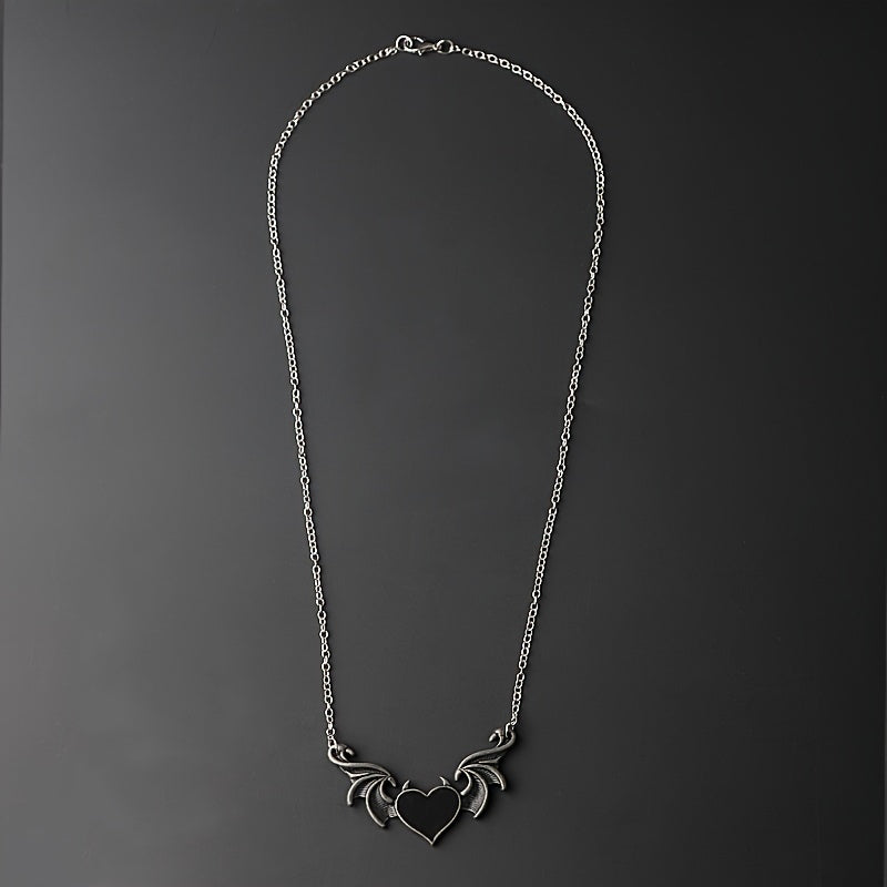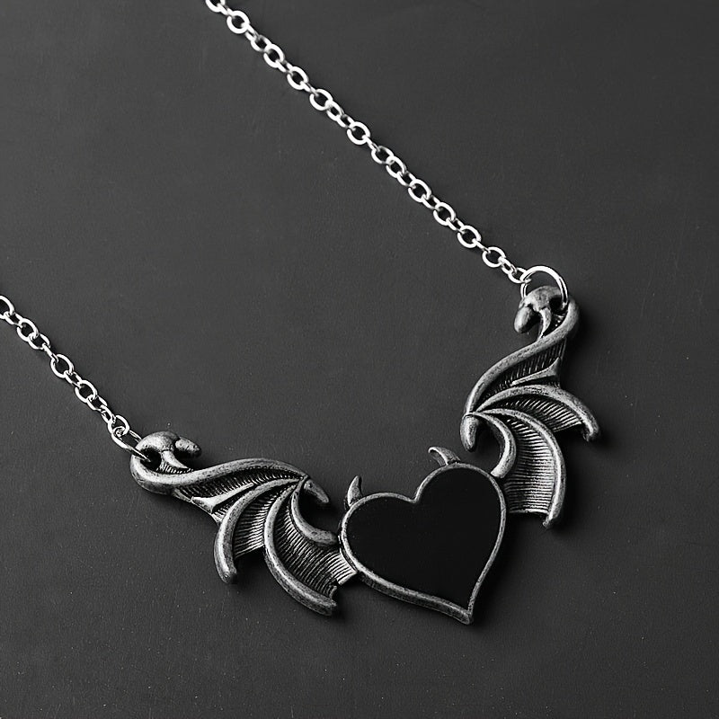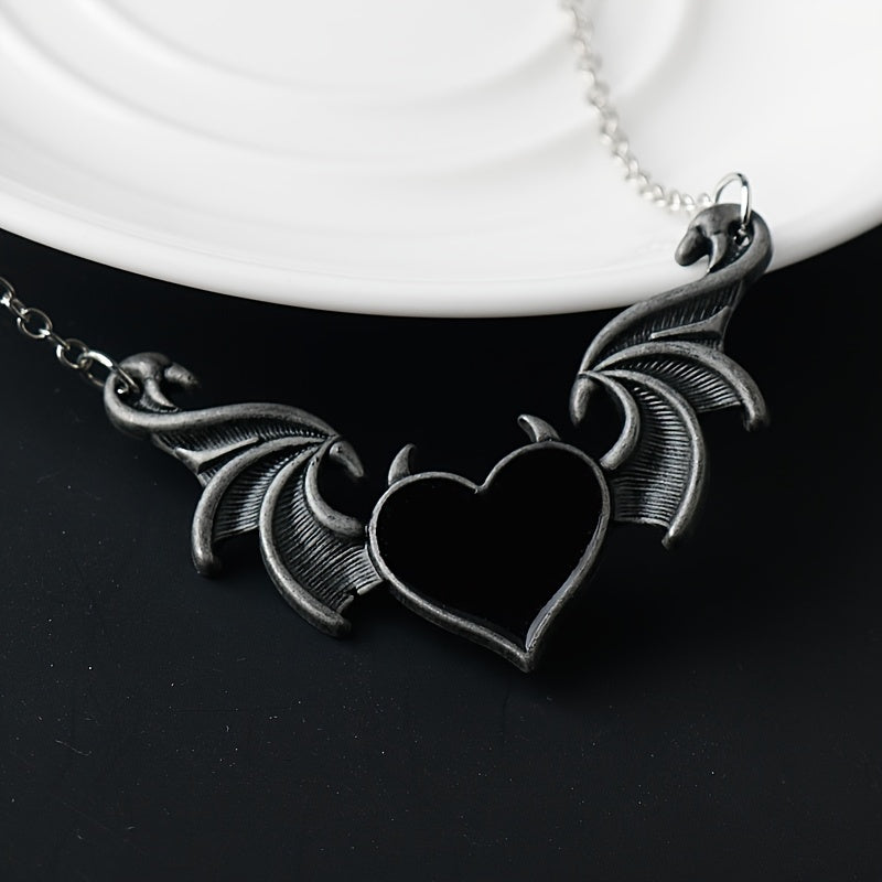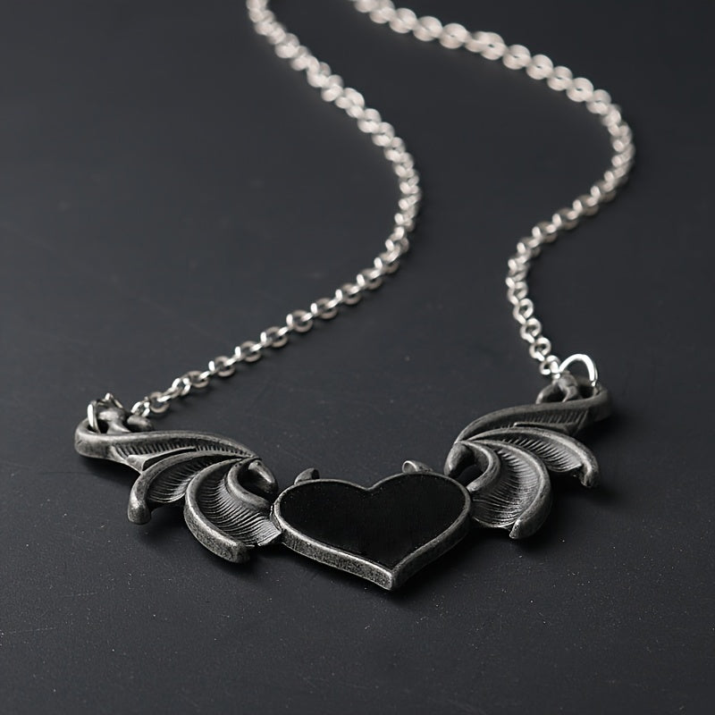 This pendant necklace features a heart-shaped bat pendant design, perfect for adding a touch of punk and hip hop style to your look. The necklace is a great addition to any jewelry collection.
