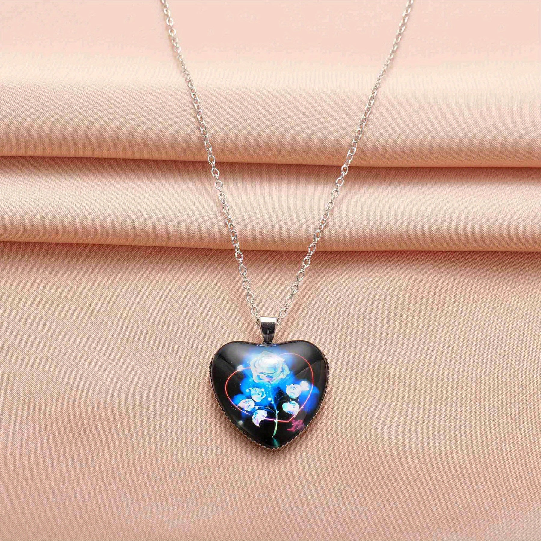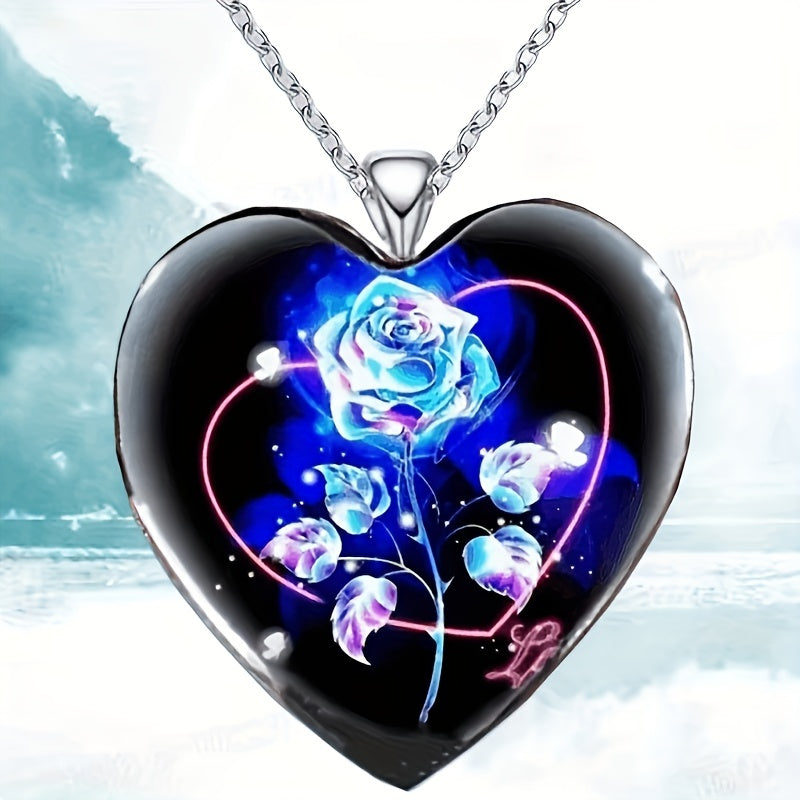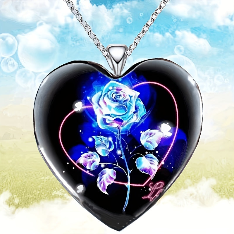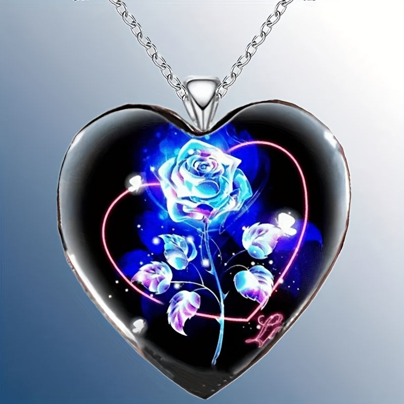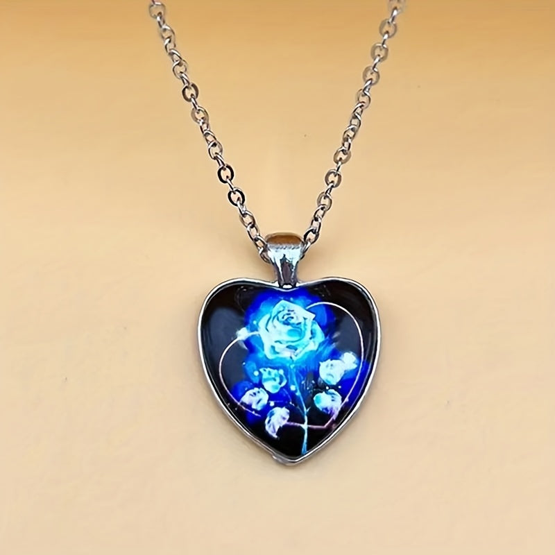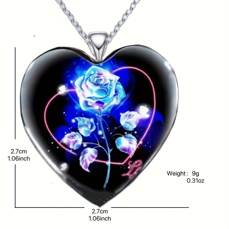 This fashionable pendant necklace is made of zinc alloy and features a creative heart flower design. It is a perfect gift for men, women, or couples.