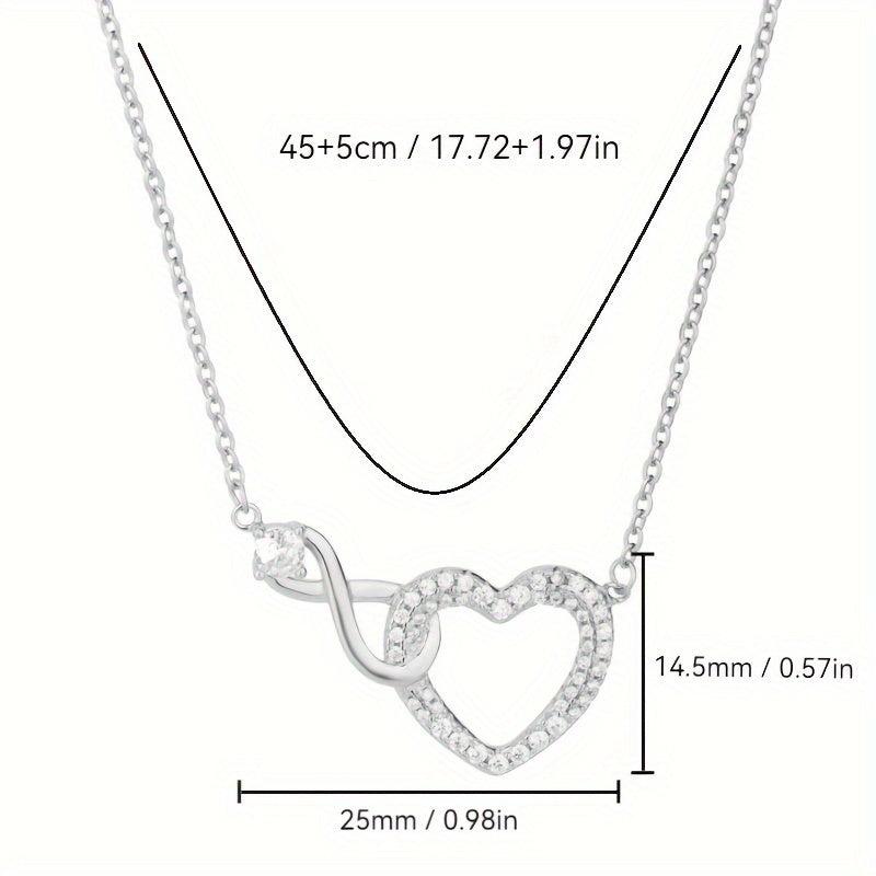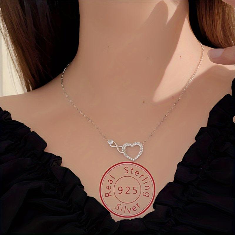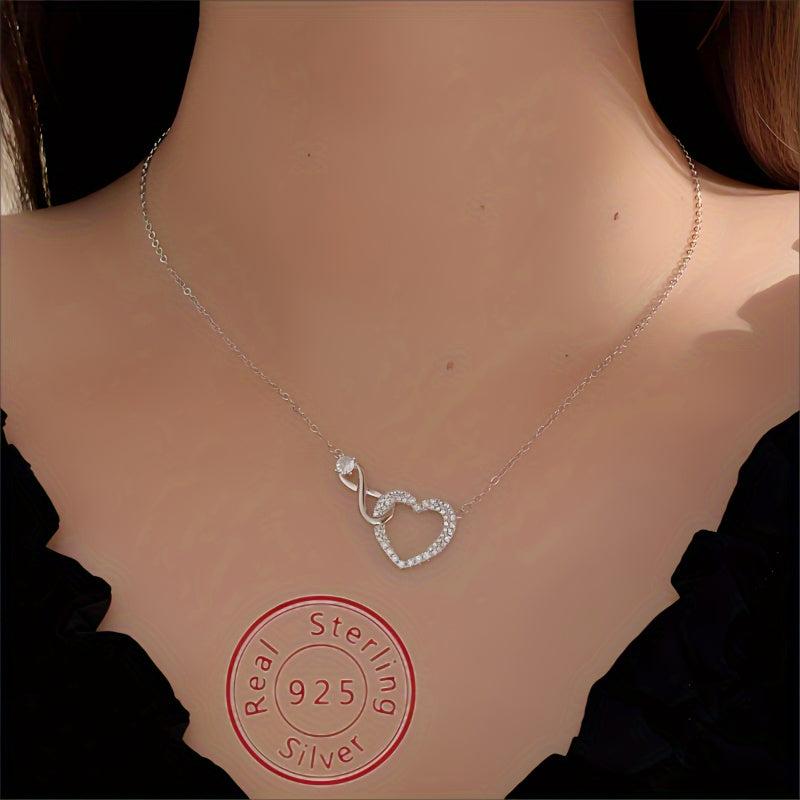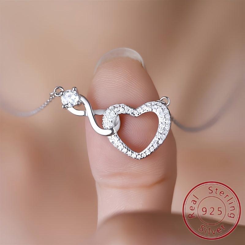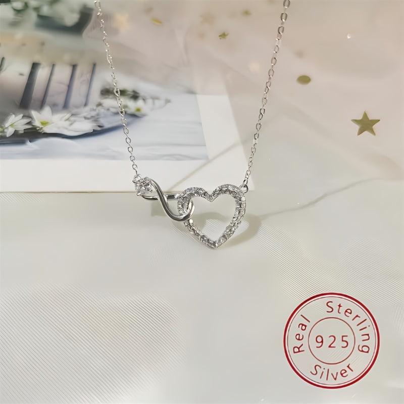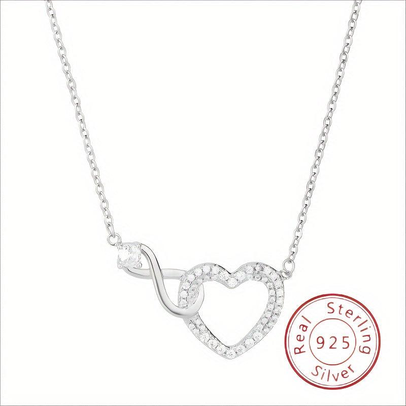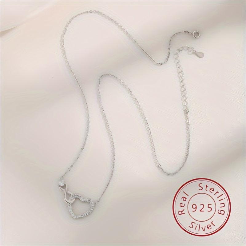 Elegant S925 silver necklace with a heart-shaped infinite symbol pendant adorned with zirconia. Perfect for a touch of unique charm.