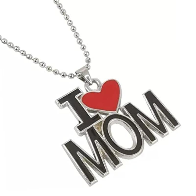 Beautiful pendant for a special mom, adorned with an 'I Love Mom' letter heart design.
