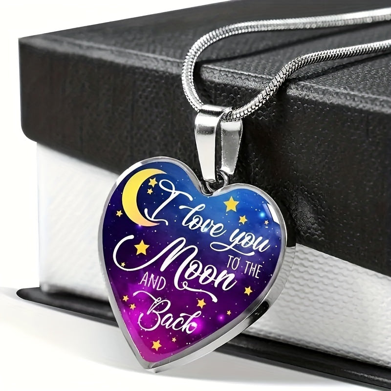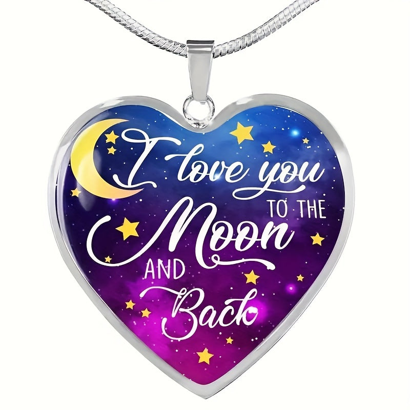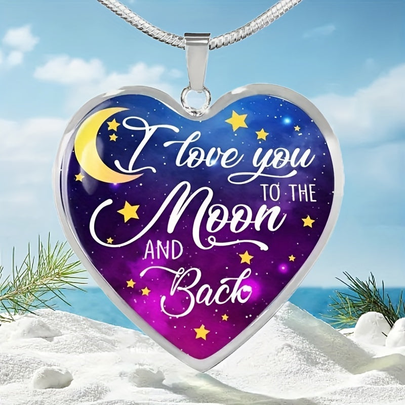 This necklace features a zinc alloy heart moon pendant, making it a creative and stylish accessory. Perfect gift for men, couples, or women.