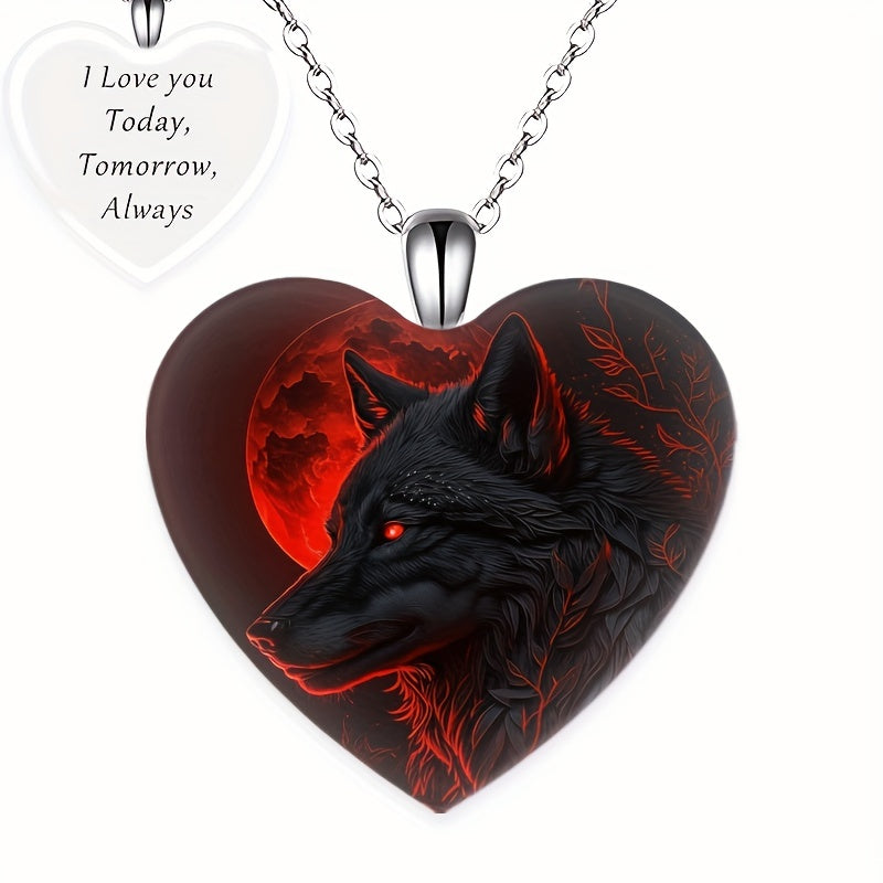 This stunning pendant necklace features a heart-shaped crystal wolf head design, perfect for parties or as a gift for men, women, or friends on special occasions like Thanksgiving, Christmas, or birthdays.