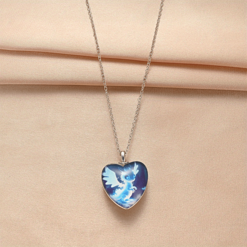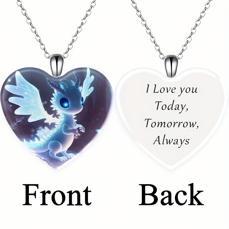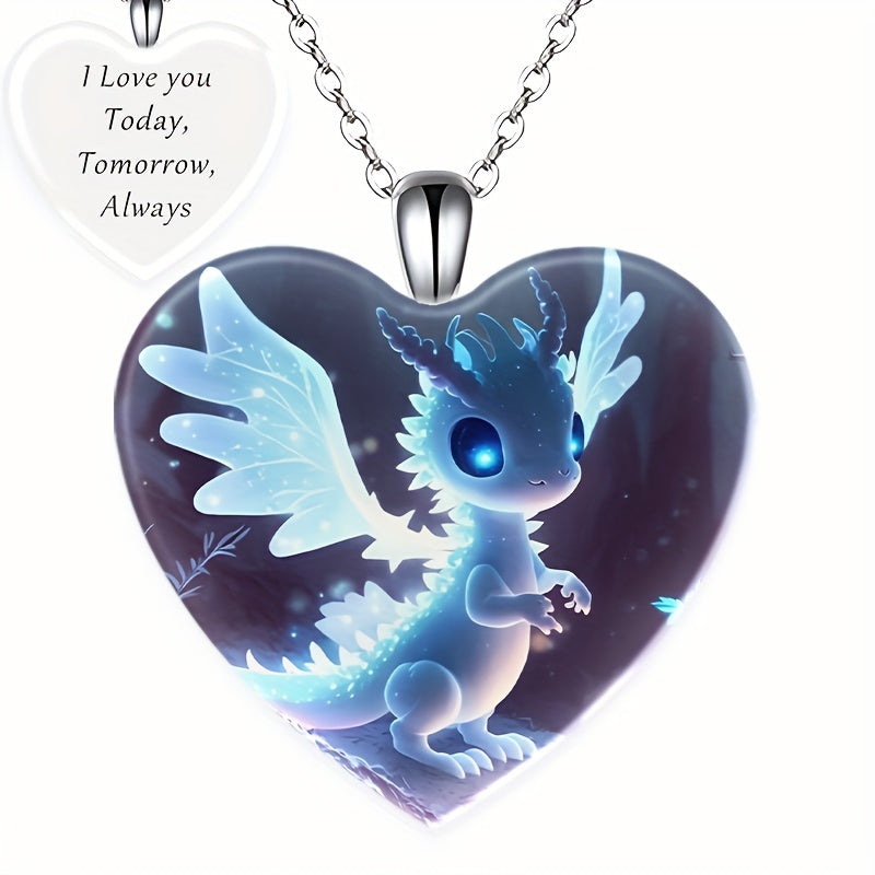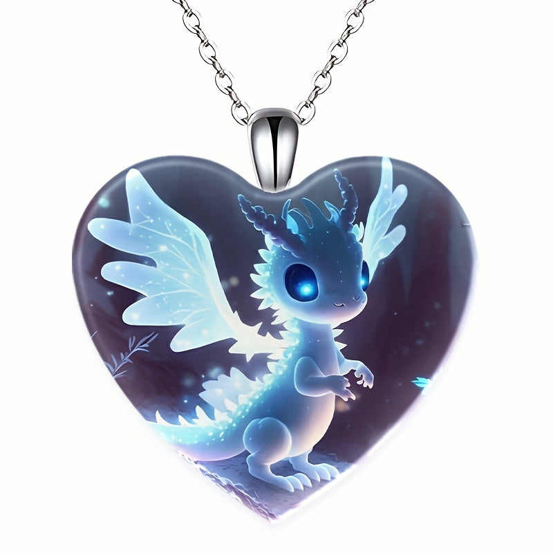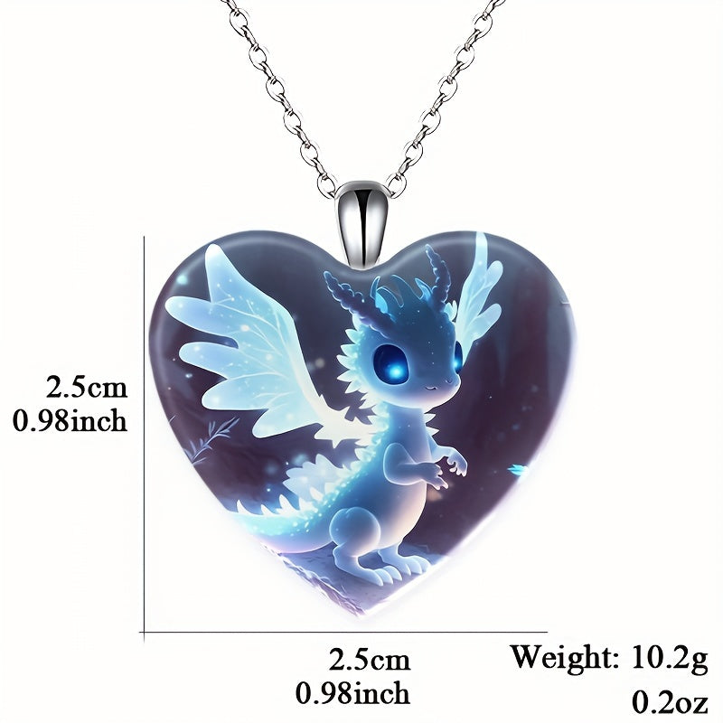 This fashionable pendant necklace features a creative heart shape small dragon design, making it a perfect gift for men, couples, or women. Made of zinc alloy, it is stylish and unique.