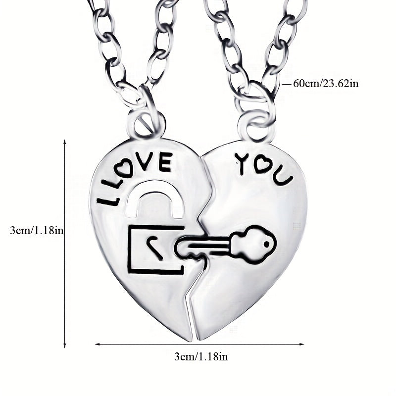 A stylish and meaningful necklace featuring a heart shape design with lock and key elements, suitable for both men and women.