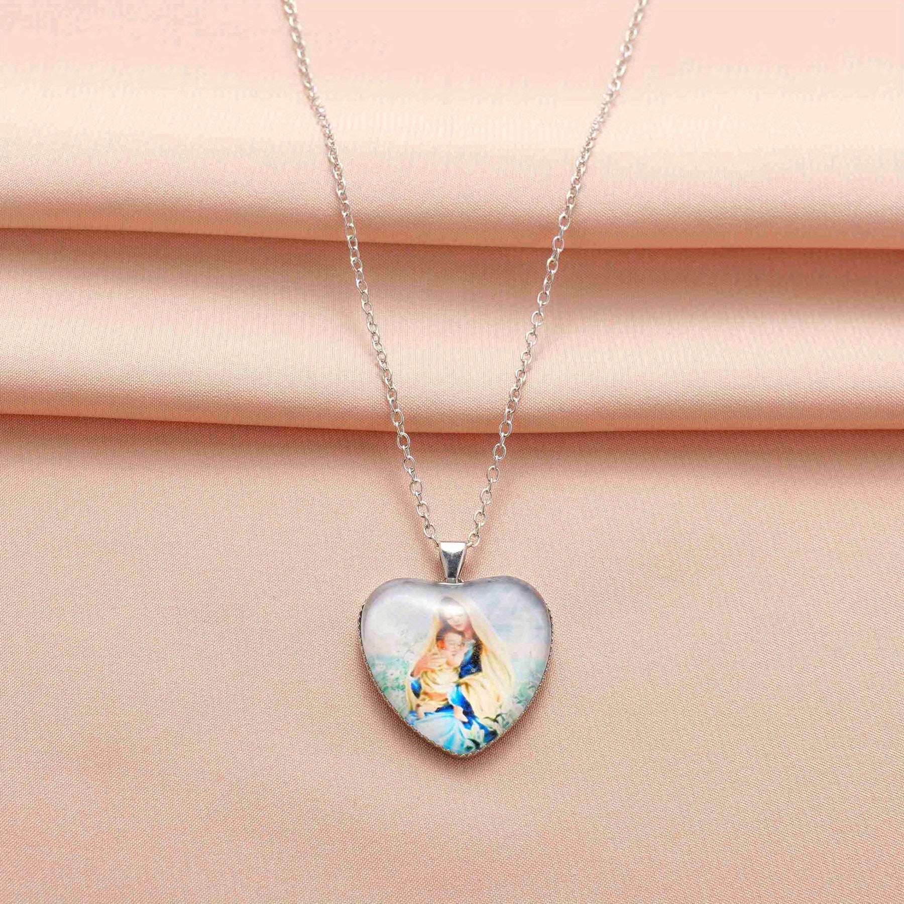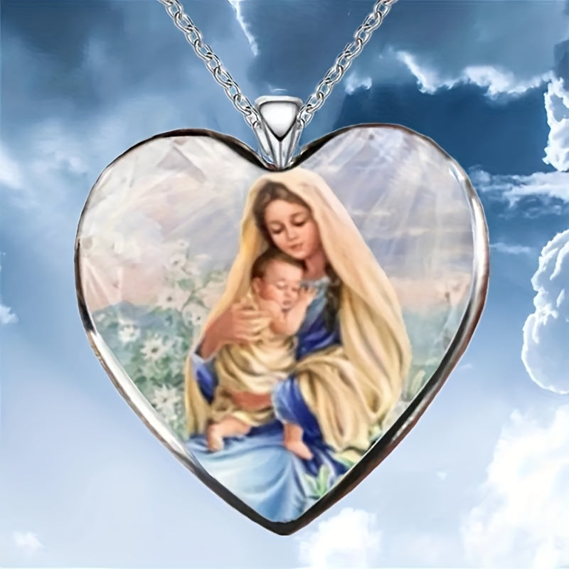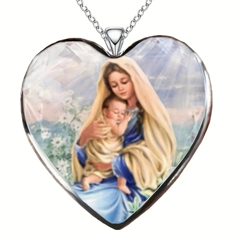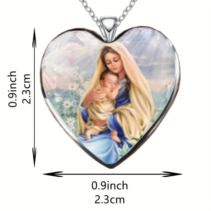 This zinc alloy pendant necklace features a creative heart shape design with Virgin Mary motif, making it a perfect gift for men, women, or friends. Ideal for parties and special occasions.