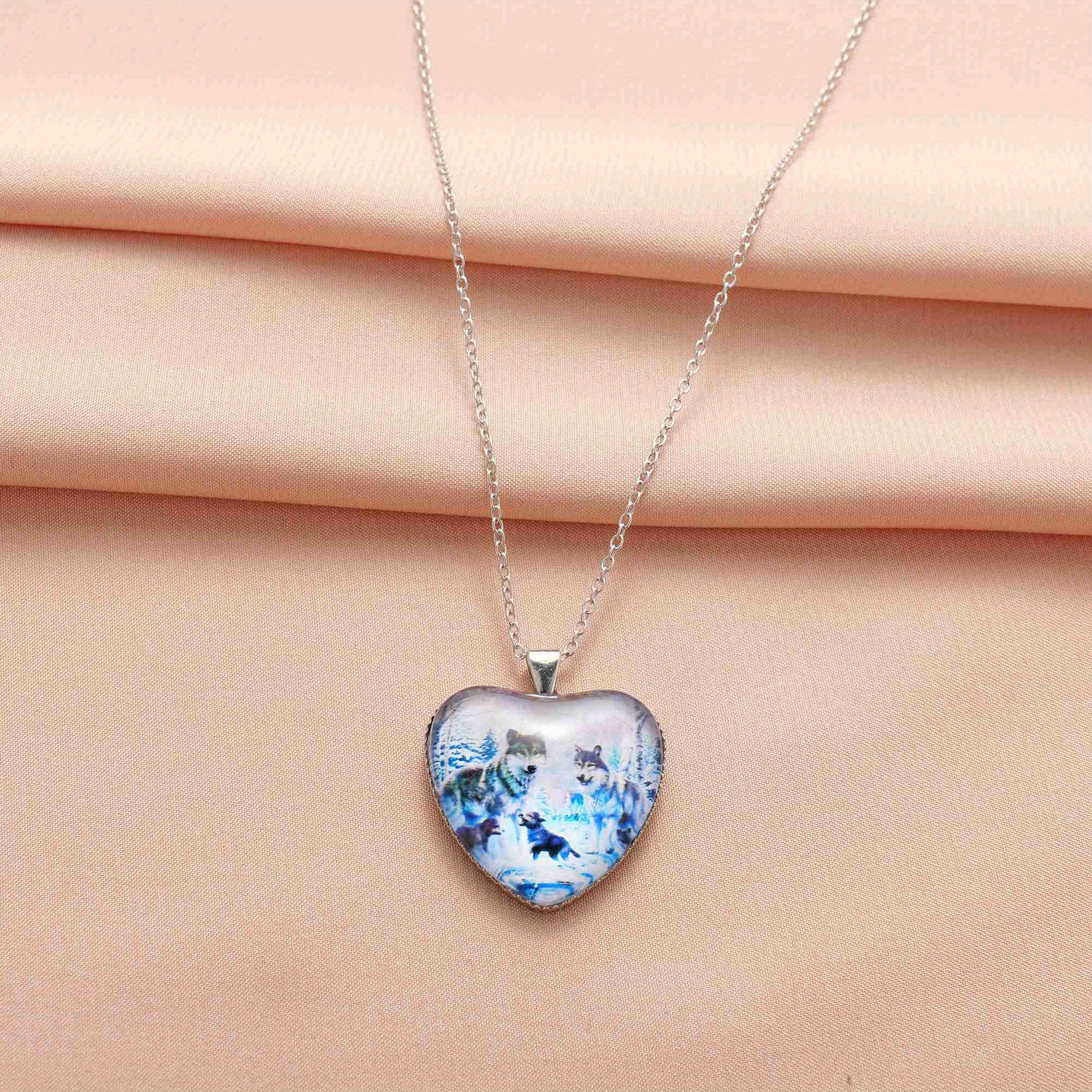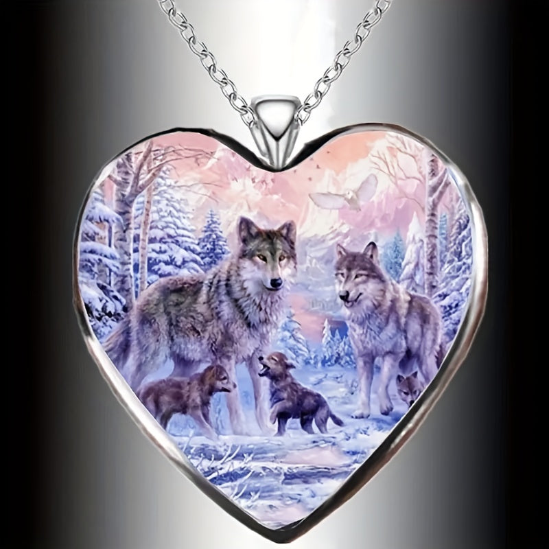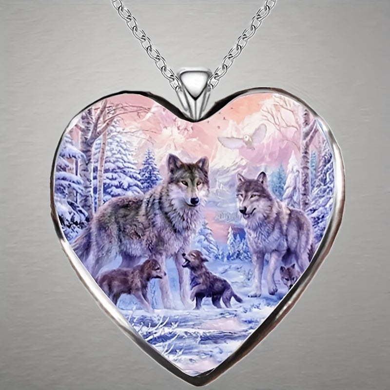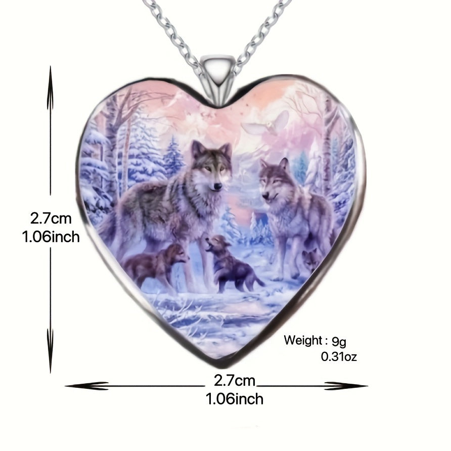 This pendant necklace features a zinc alloy heart shape with wolves design, perfect for men, couples, or women. Make a stylish statement with this creative accessory.