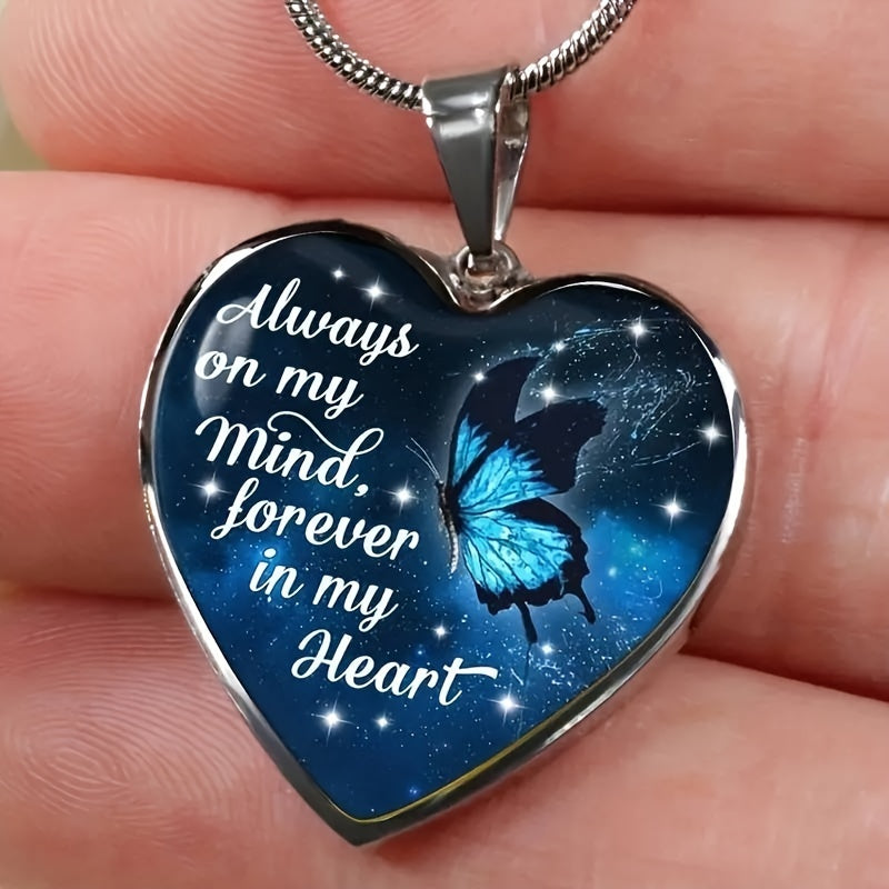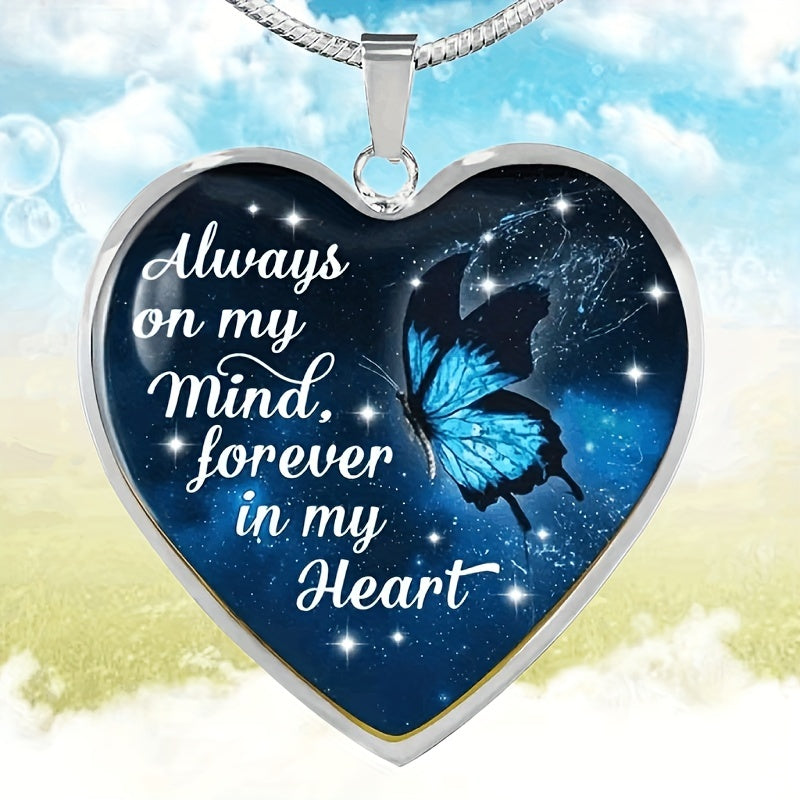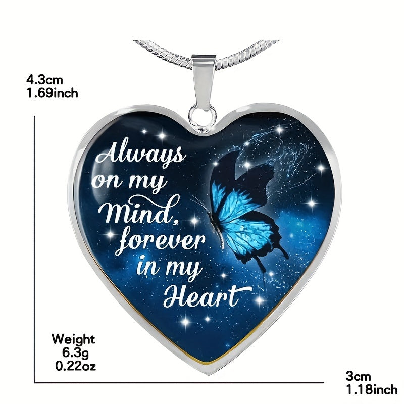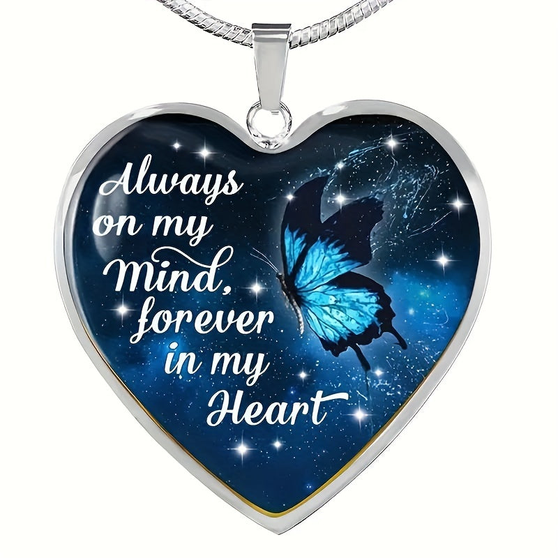 This stunning heart shaped pendant necklace features a beautiful butterfly pattern, making it an ideal gift for anniversaries, Christmas, birthdays, and other special occasions.
