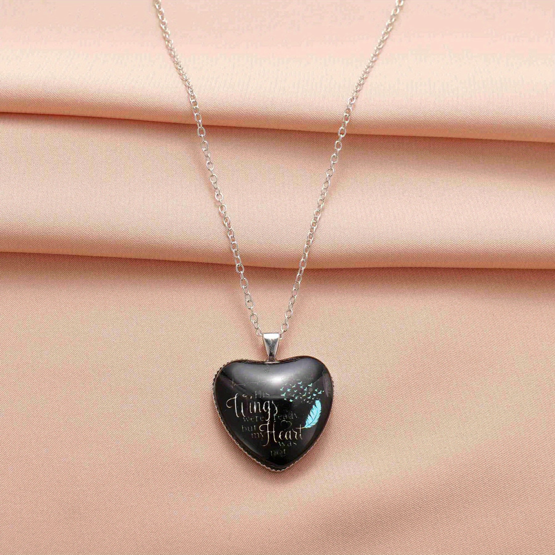 Add a touch of elegance with this creative heart-shaped pendant necklace featuring an English feather design. Perfect for parties or as a gift for men, women, or friends.