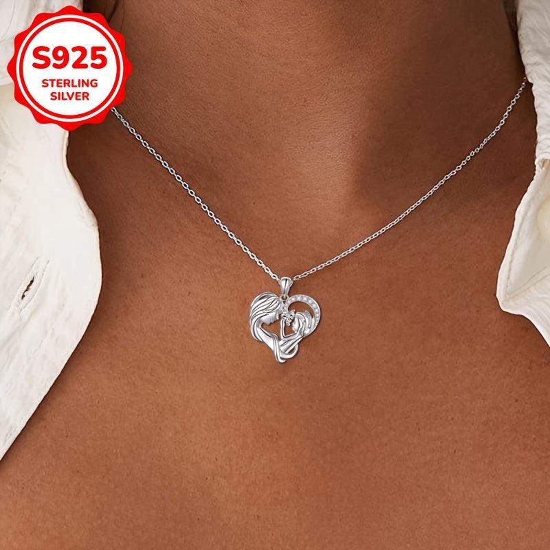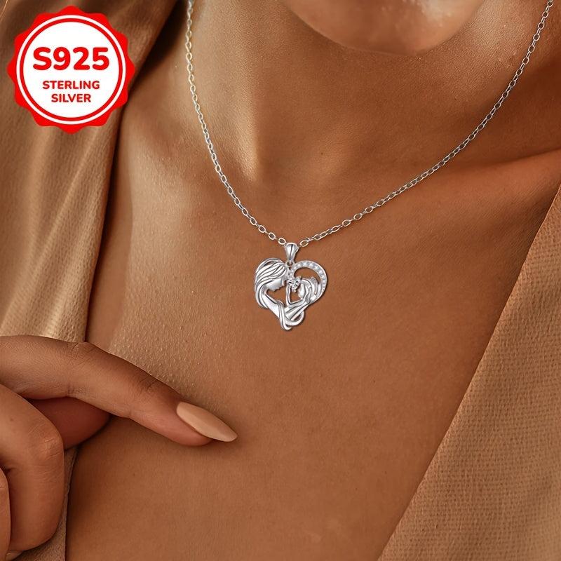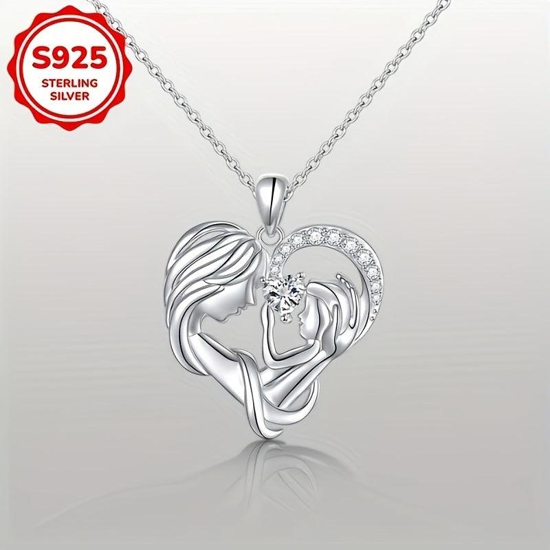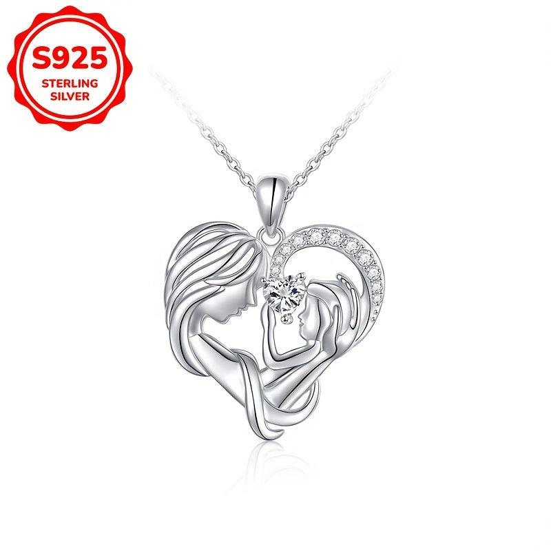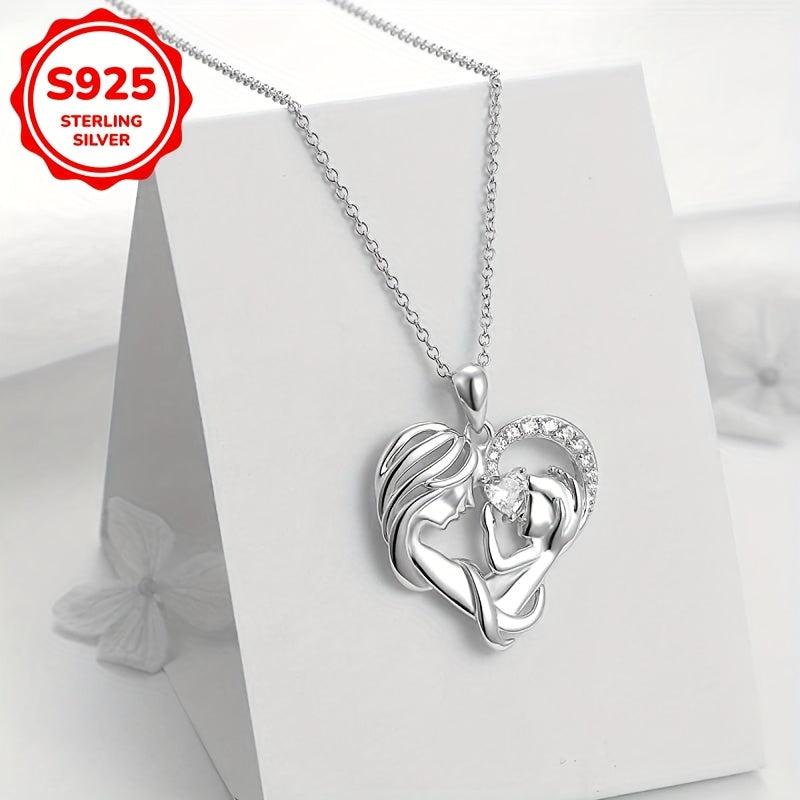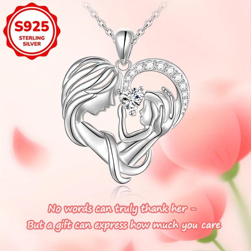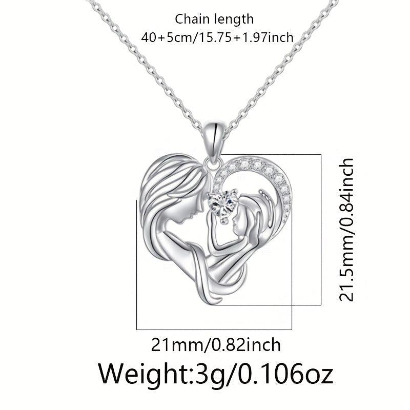 This pendant necklace features a light inlaid with Synthetic Zirconia depicting a mother and son embrace. Perfect for daily wear or special occasions. Makes a great birthday gift.