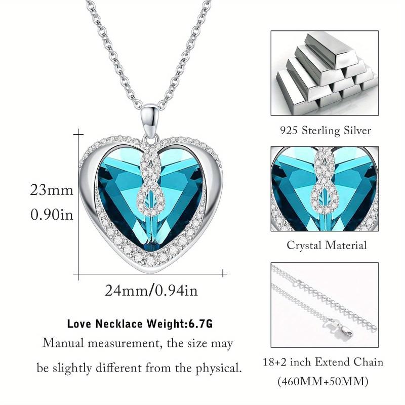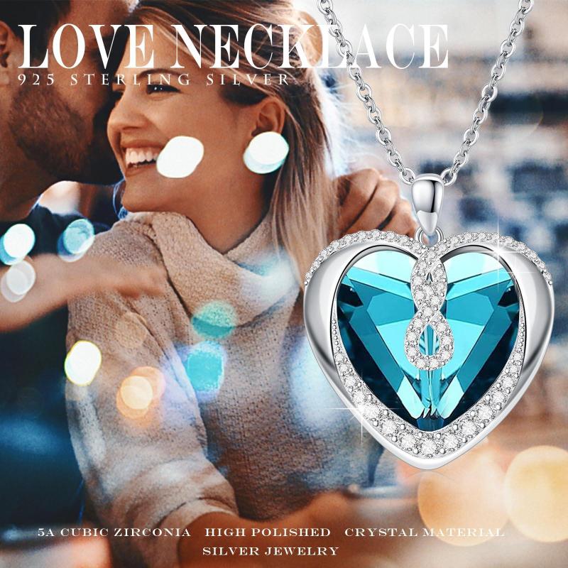 This beautiful heart shaped necklace features an infinity chain made of 925 sterling silver. It is a perfect gift for your female girlfriend, mother, or mother-in-law.