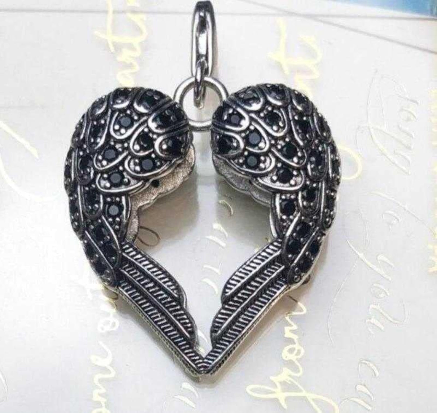 Elevate your style with this Bling Queen Plated Oxidized Heart Shaped Wings Pendant Necklace, a fashionable accessory for any outfit.