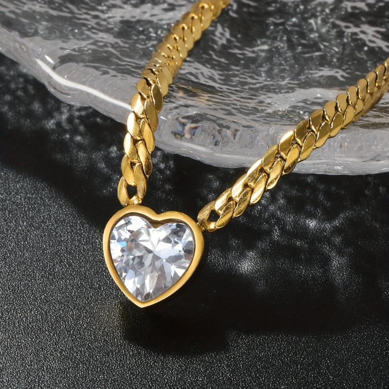 Elevate your party and formal looks with this heart-shaped synthetic zirconia choker necklace in golden tone. Great for all seasons.